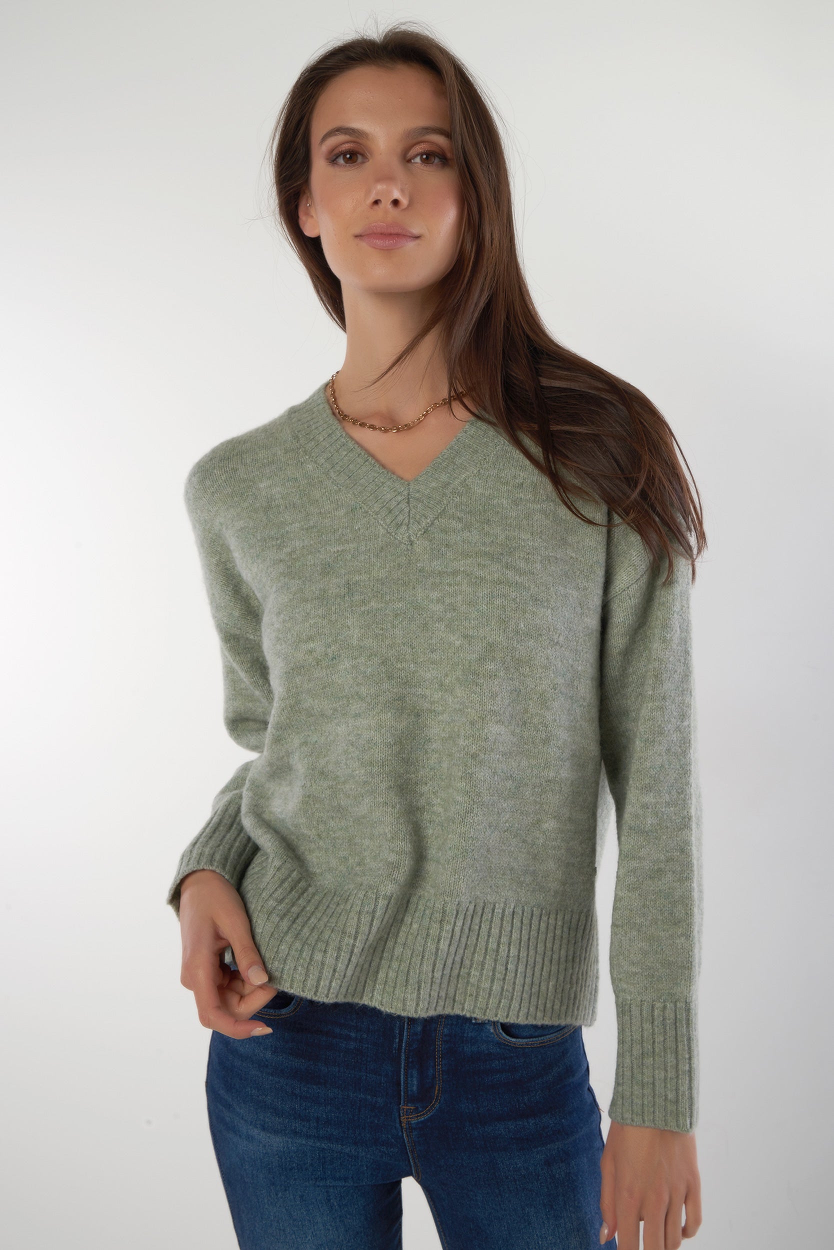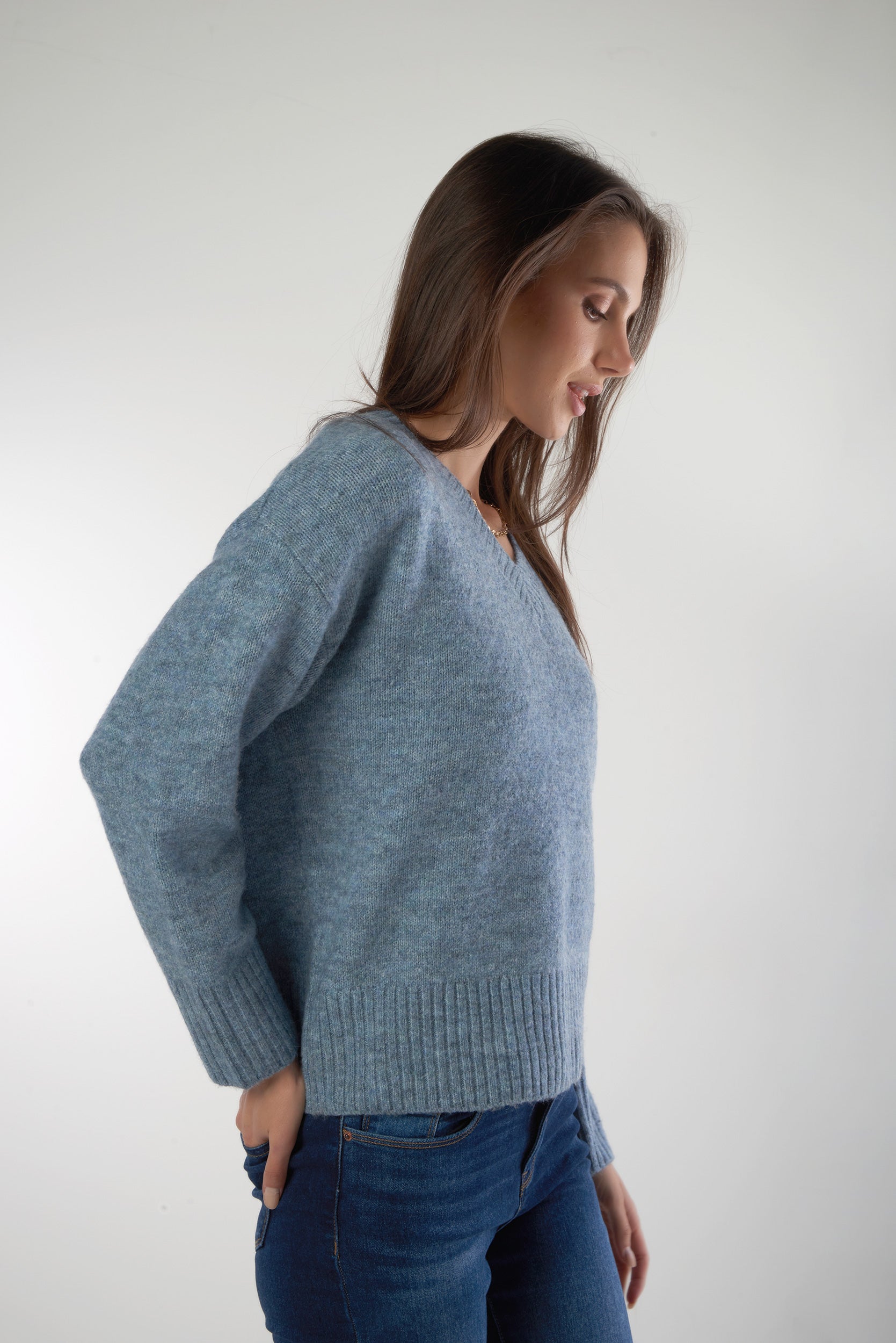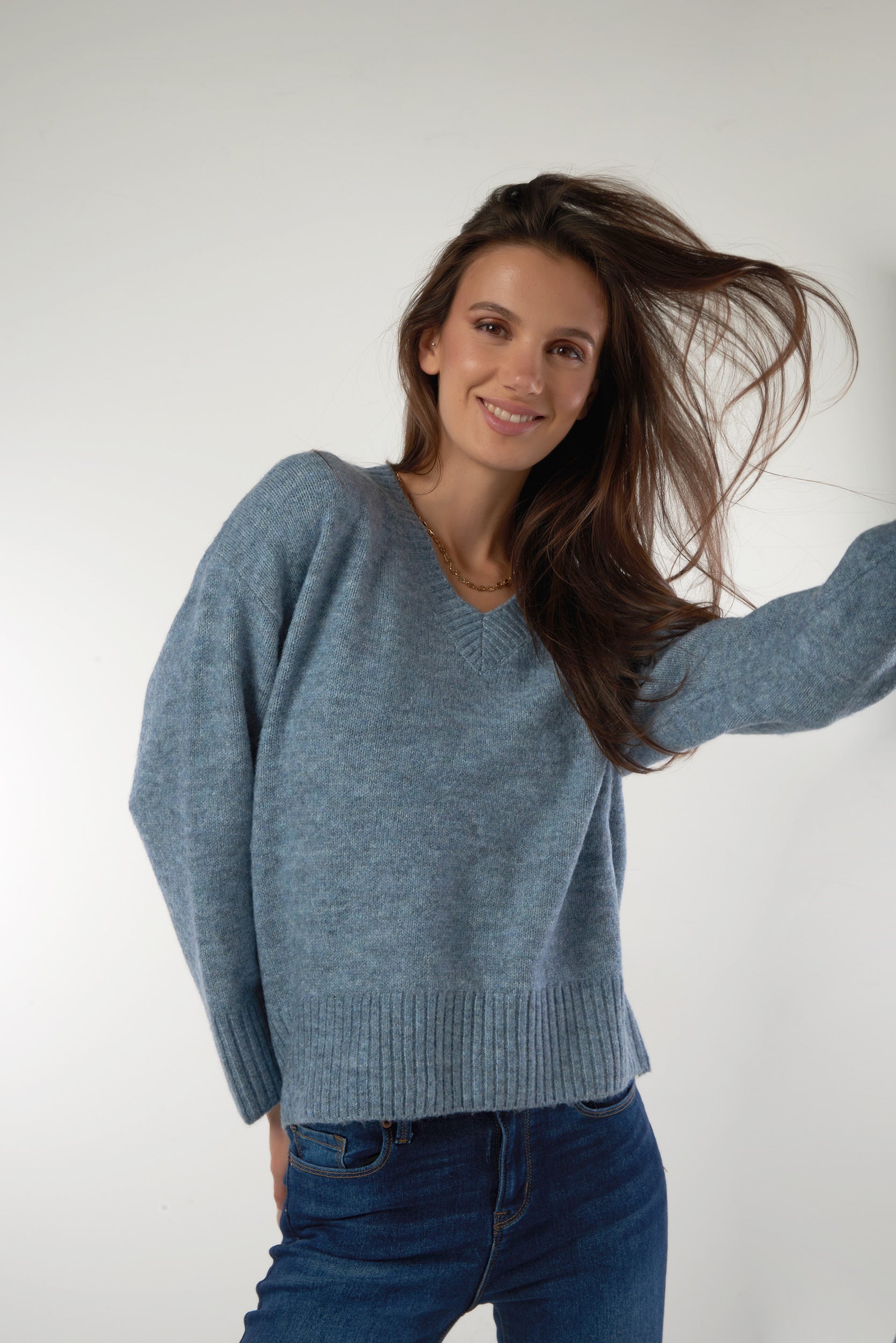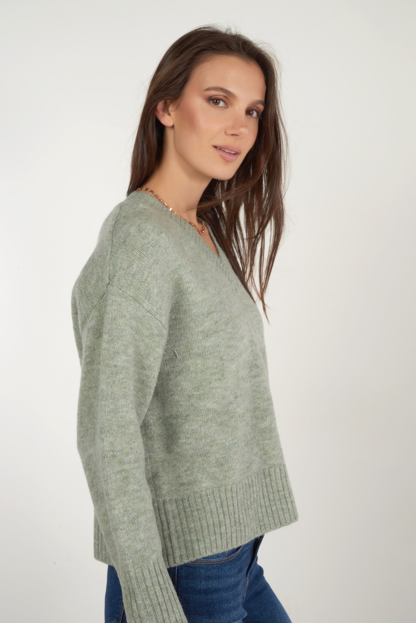 Chandail surdimensionné à col en V - MEL - (E-B3)
