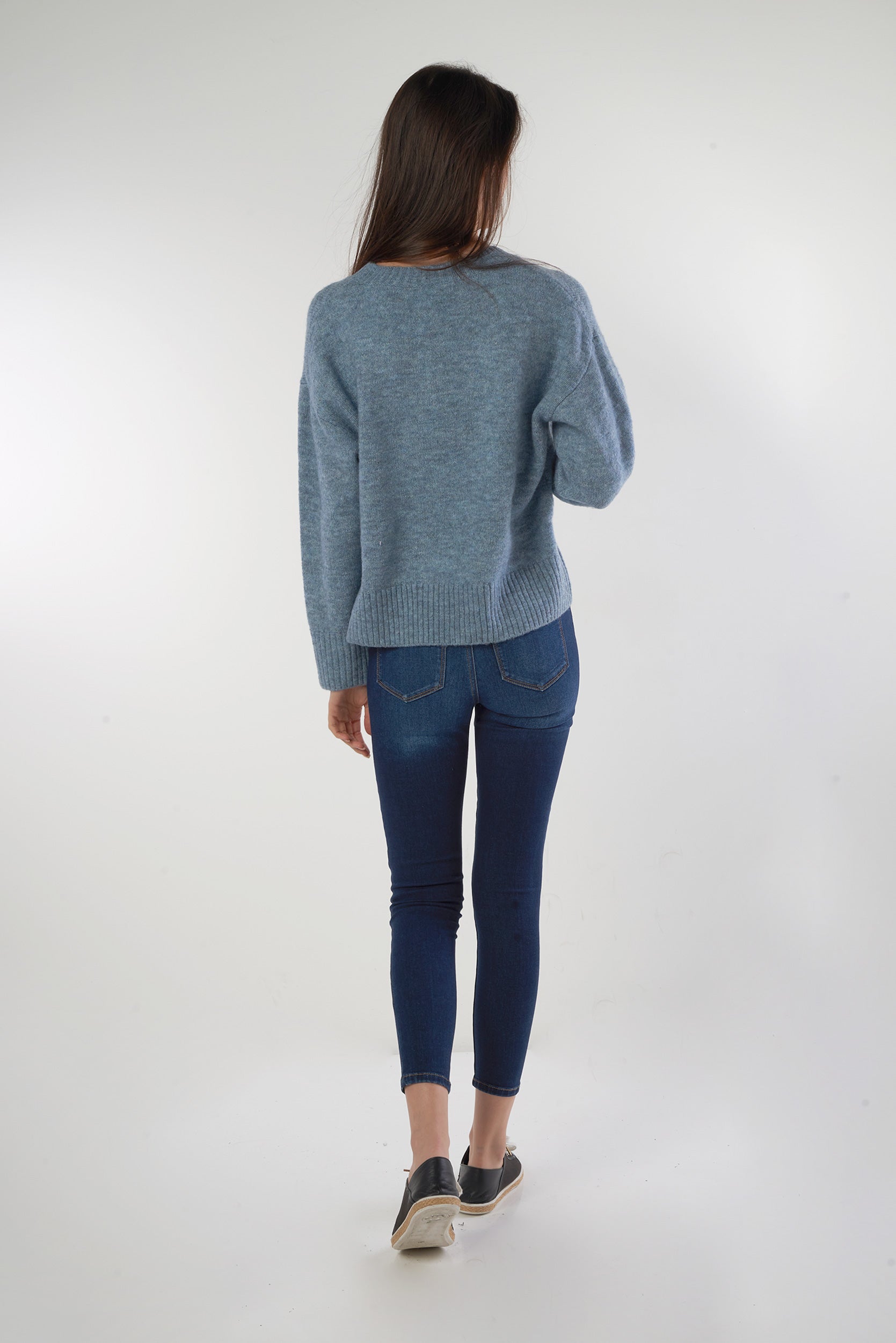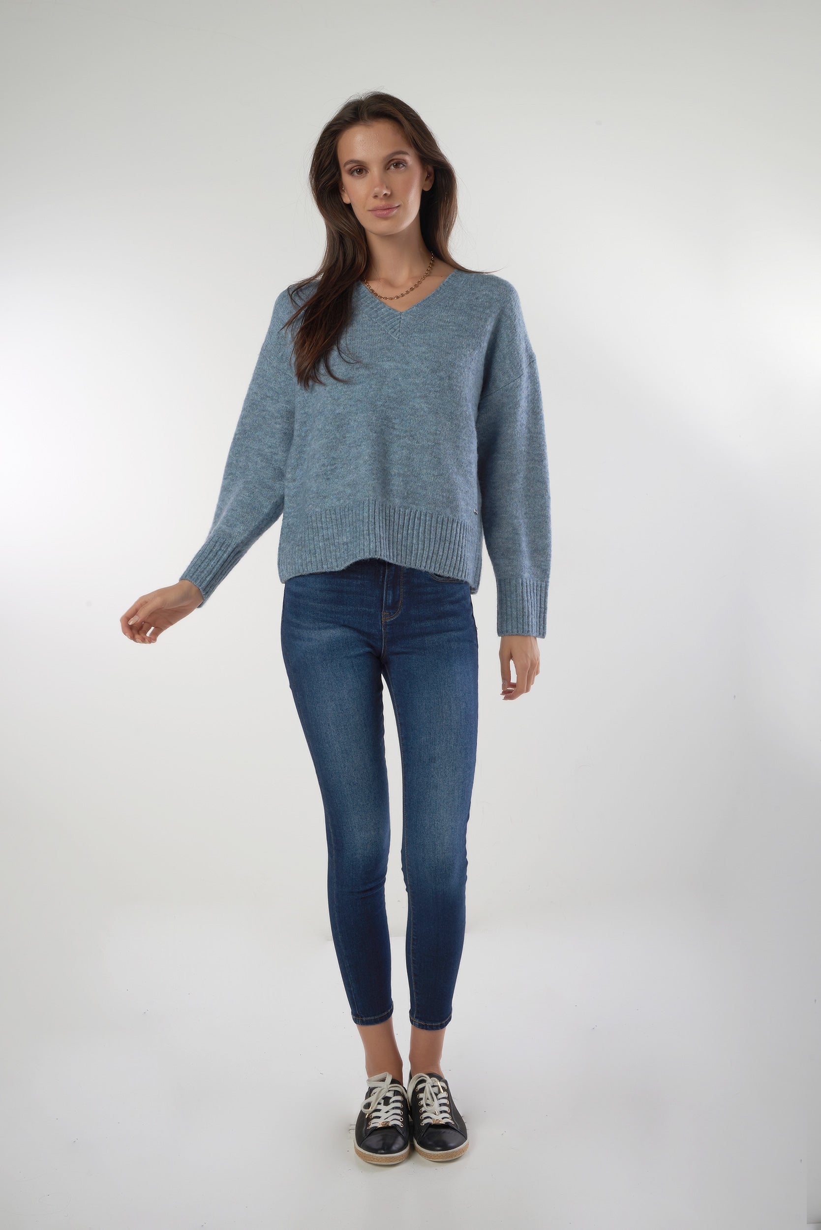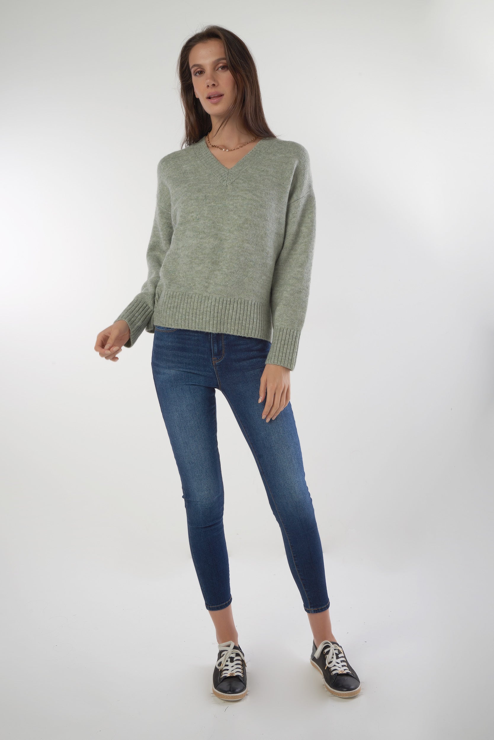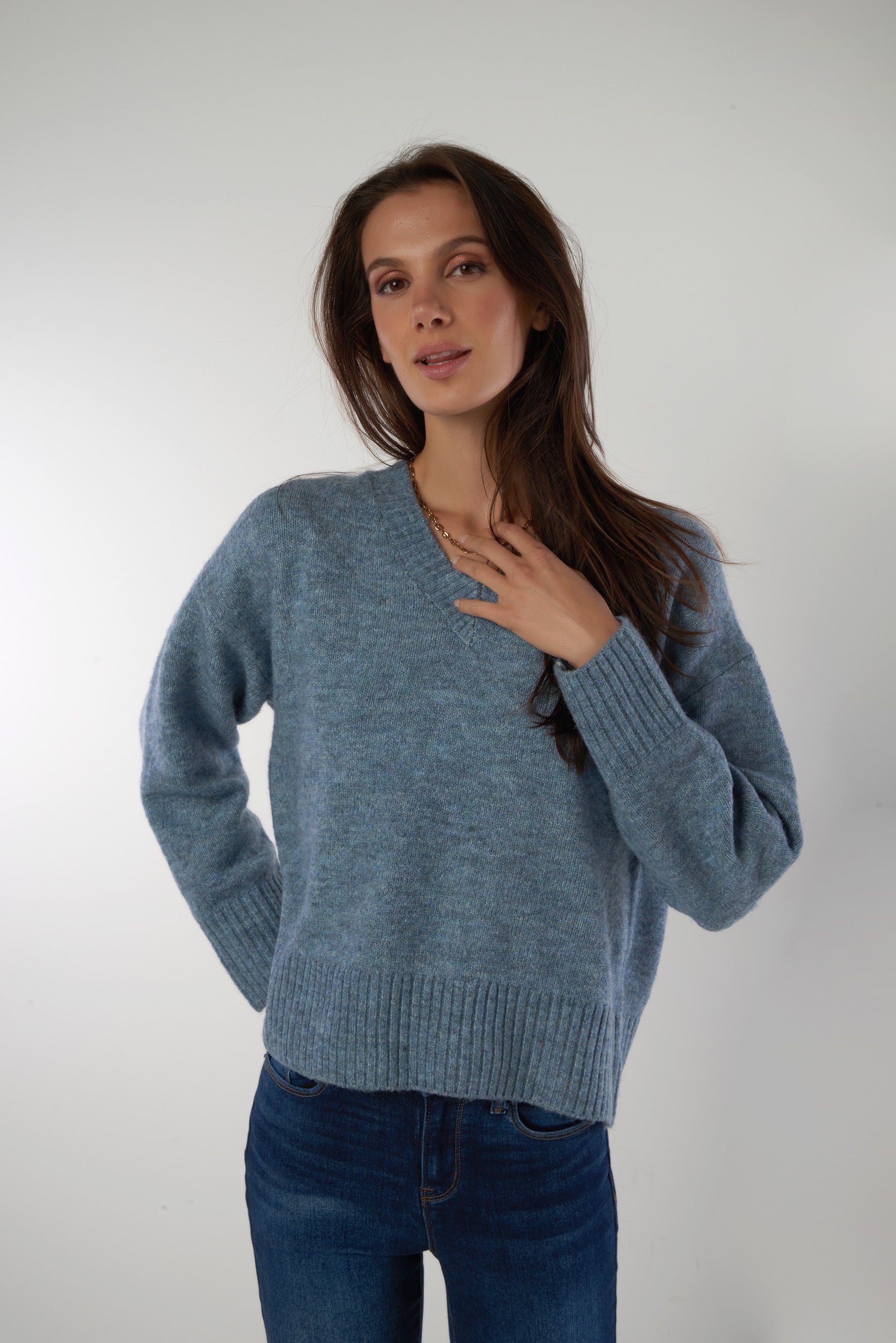 Chandail surdimensionné à col en V - MEL - (E-B3)