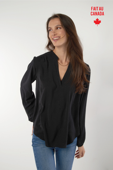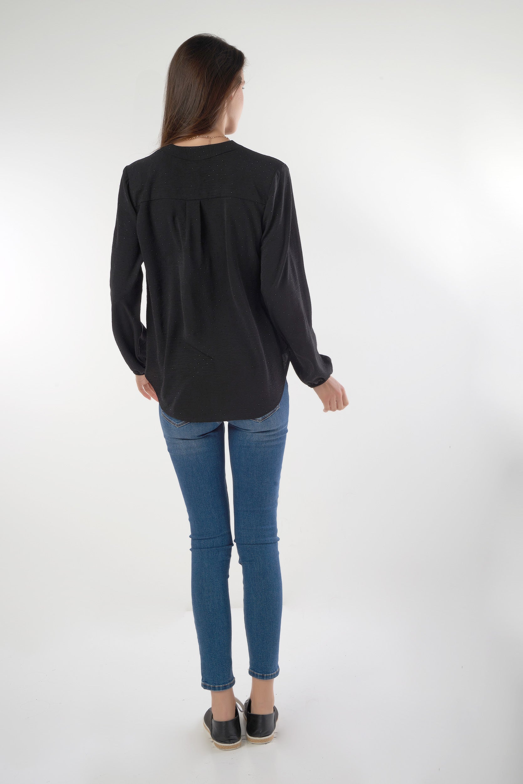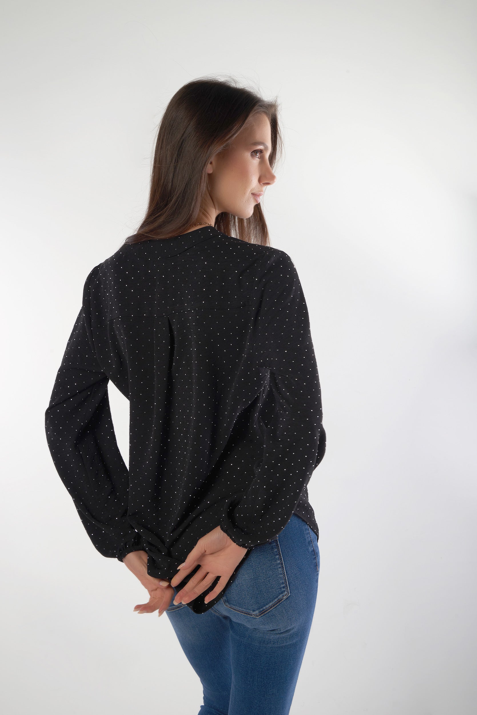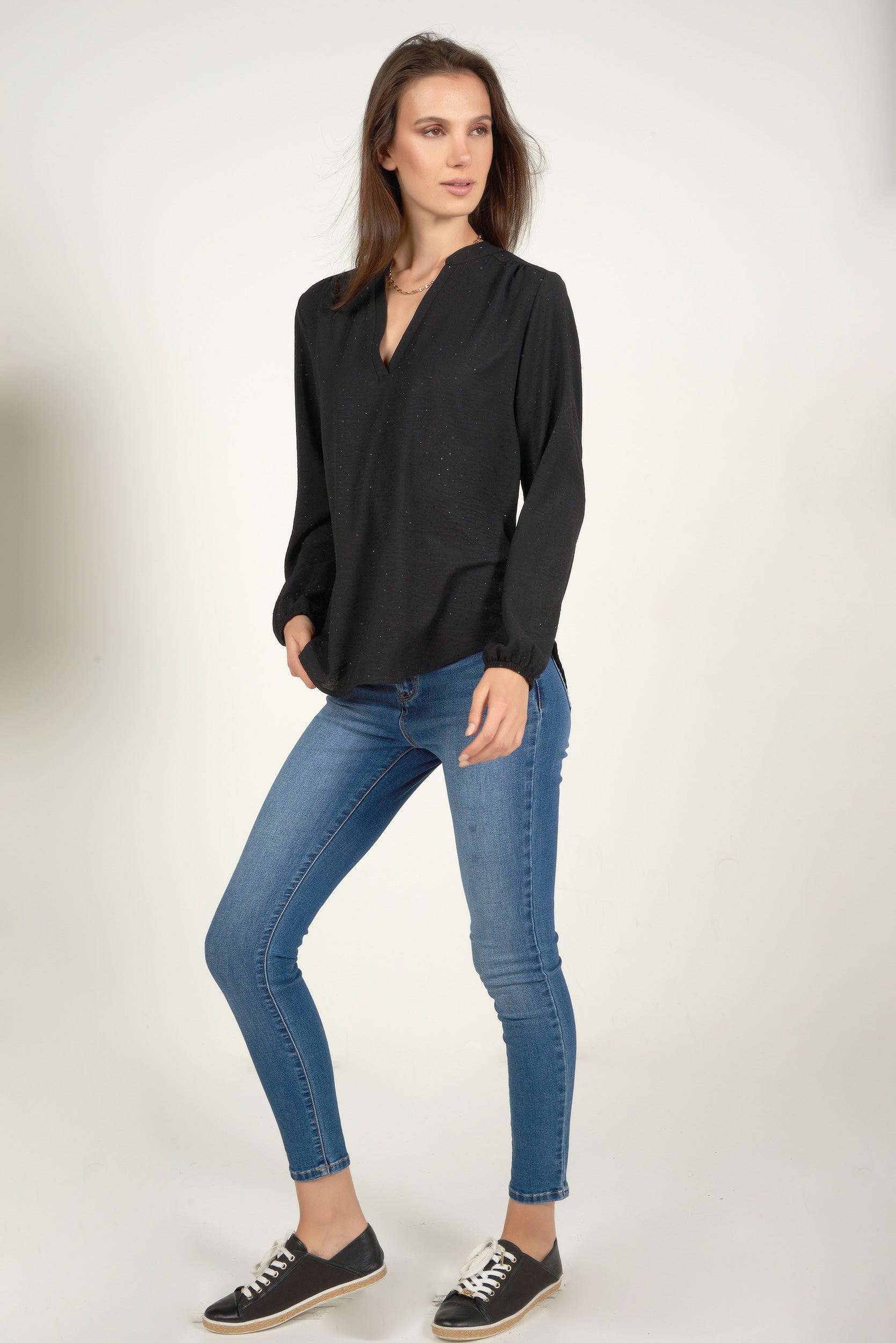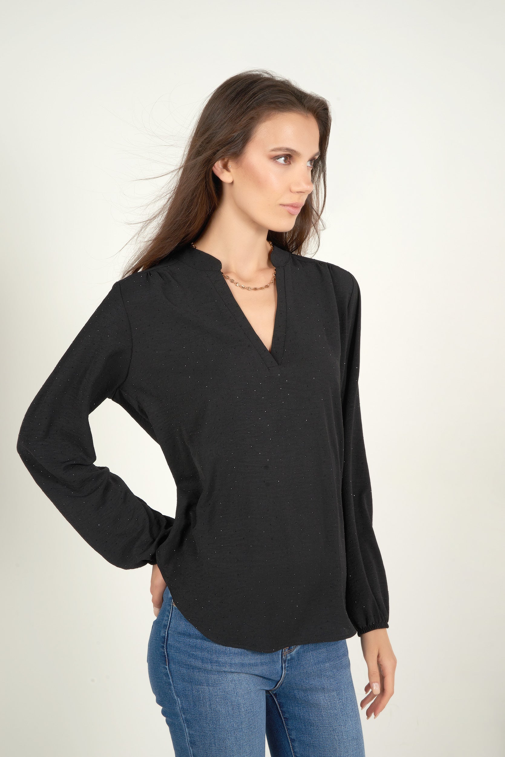 Découvrez une de nos blouses classiques avec une touche d'originalité : notre blouse pour femme ARISTAH. Avec ses manches longues, son encolure en V et ses pierres, ce haut pour femme est parfait pour rehausser vos looks dans la simplicité et l'élégance.
