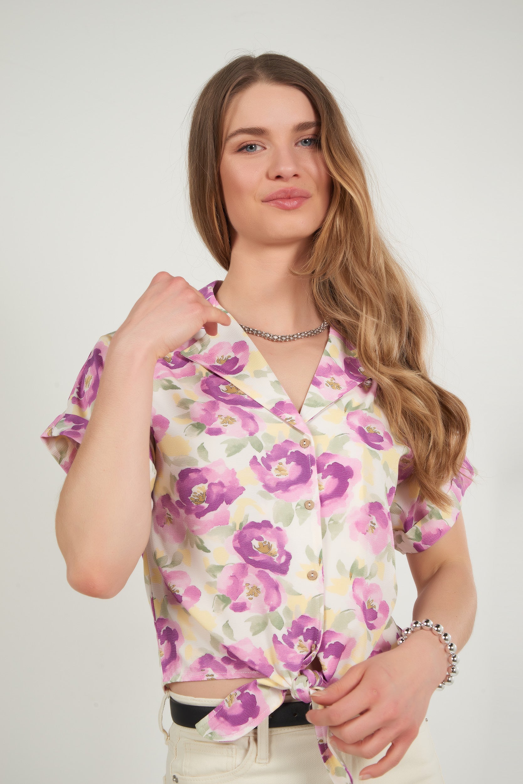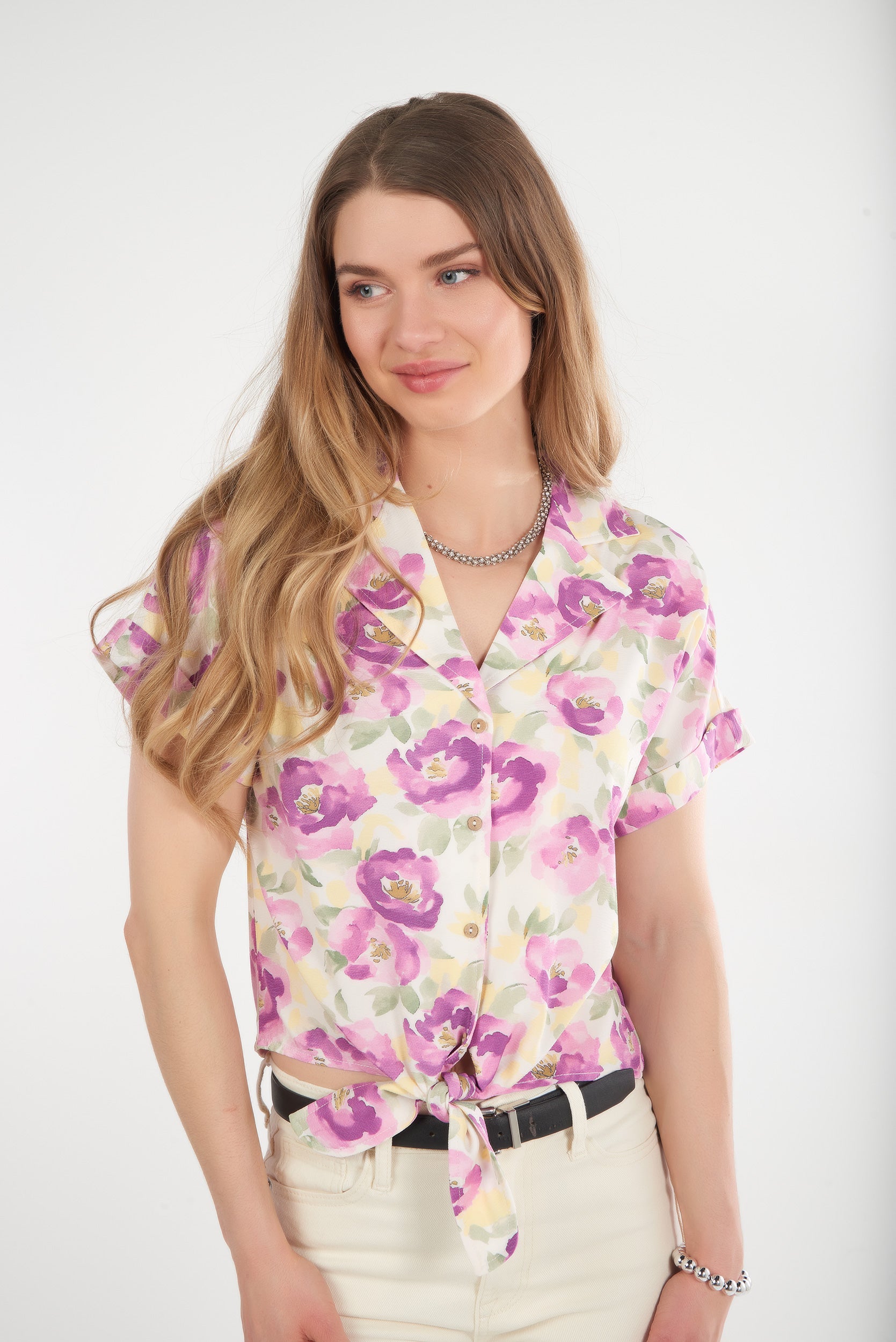 Cette blouse fleurie légère est la pièce parfaite pour illuminer vos tenues avec une touche de fraîcheur estivale. Son imprimé floral aux nuances douces apporte un style romantique et tendance. Avec sa coupe décontractée, ses manches courtes et son joli lien à nouer à la taille, elle sublime la silhouette tout en restant confortable. Un essentiel pour un look chic, féminin et plein de charme.