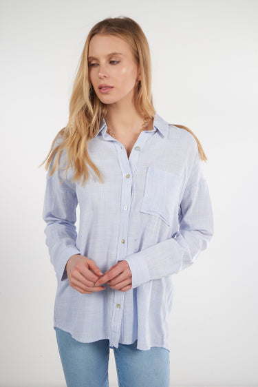 Habillez-vous avec élégance avec notre chemisier pour femme, la blouse pour femme 18335-Y1. Cette chemise chic est offerte en deux couleurs : blouse blanche et bleue et blouse blanche et rose.