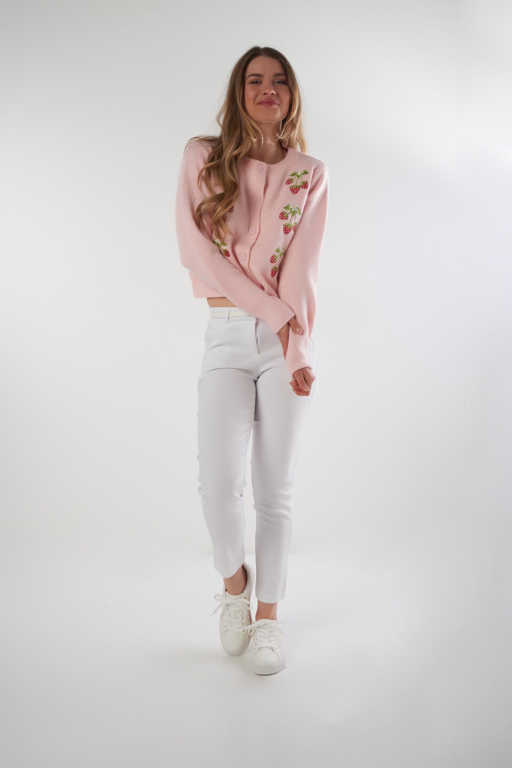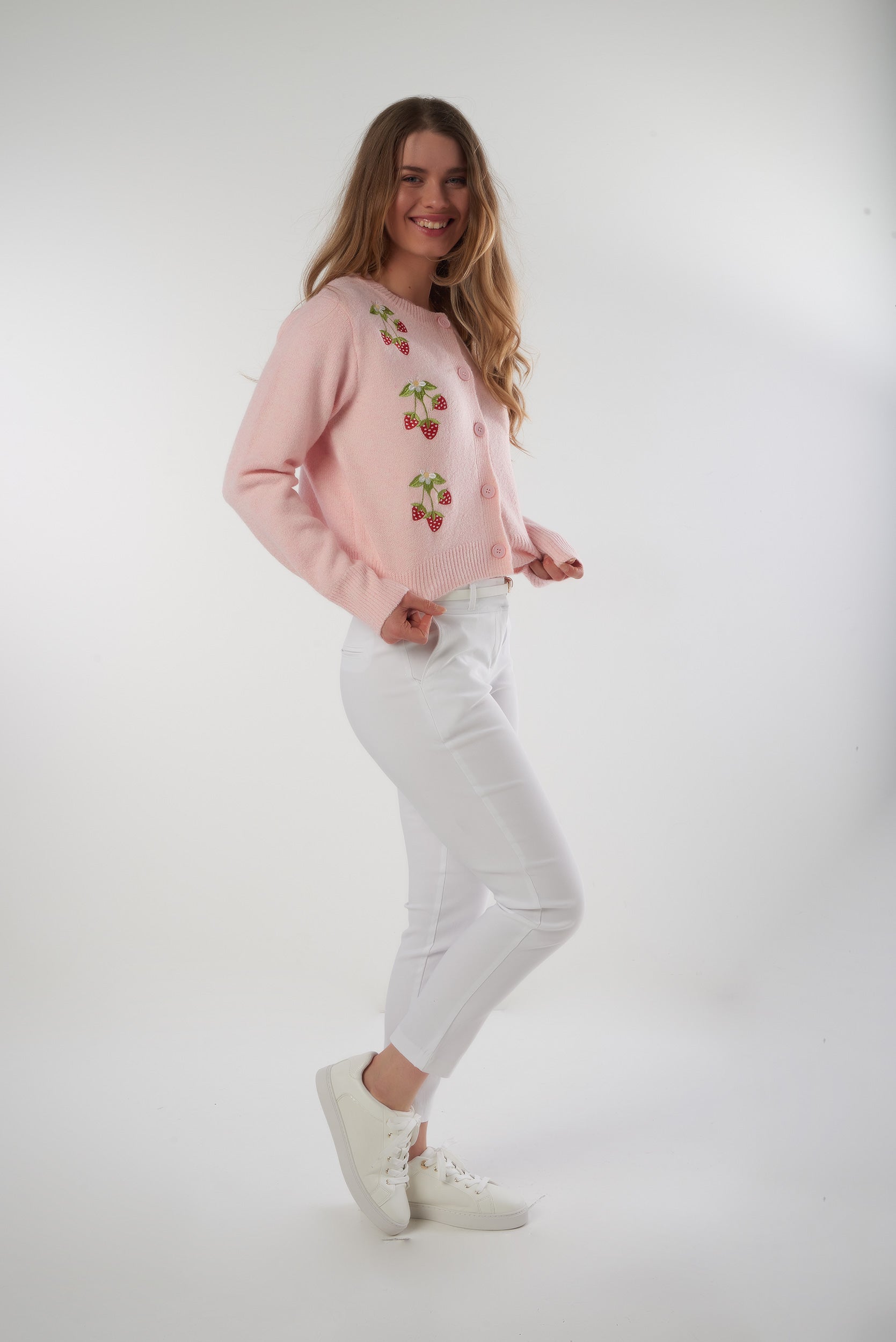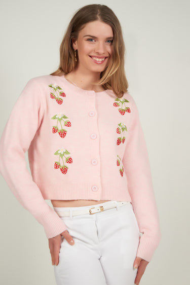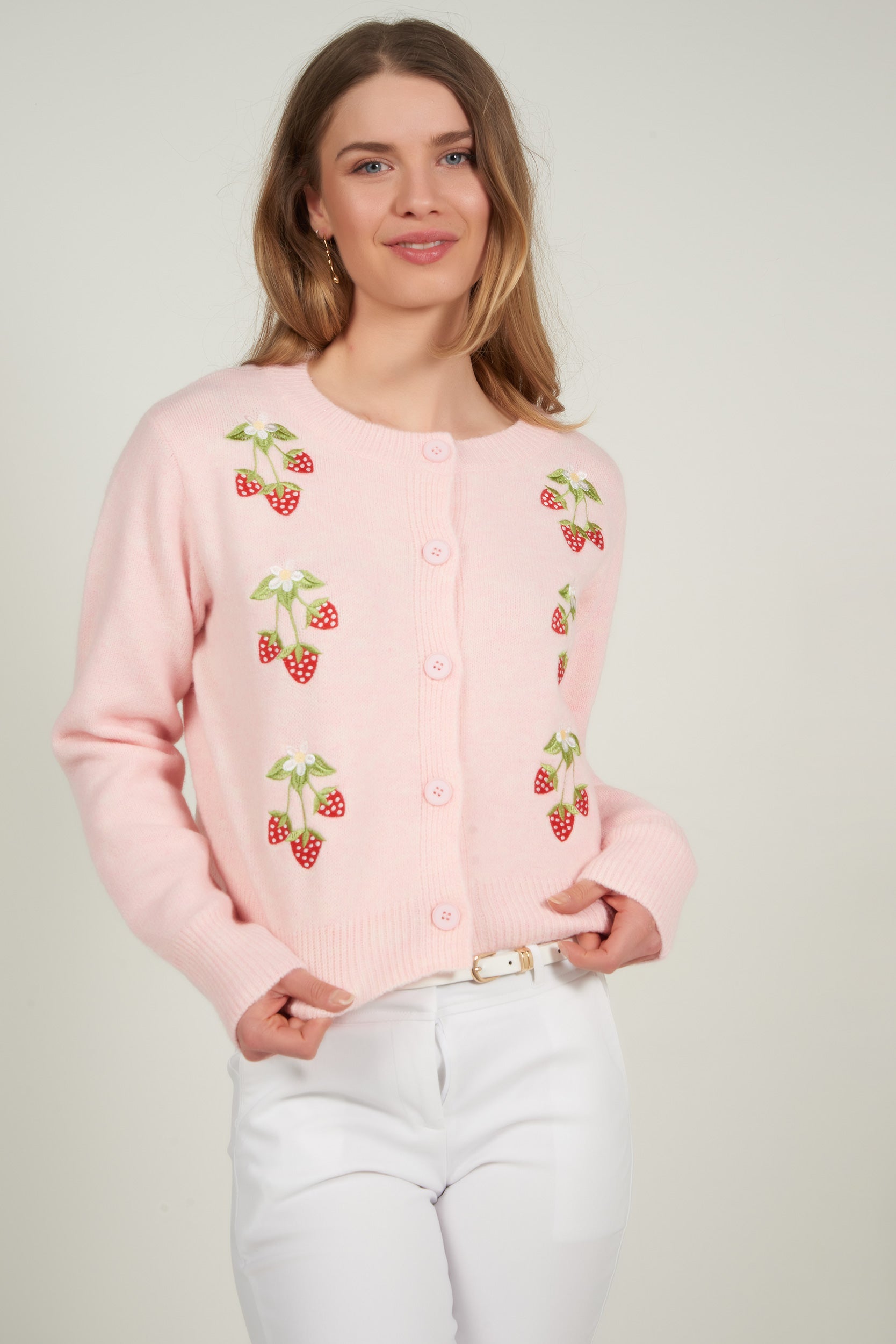 Cardigan en maille à broderies de fraises - Y8618-B - (E-A9)
