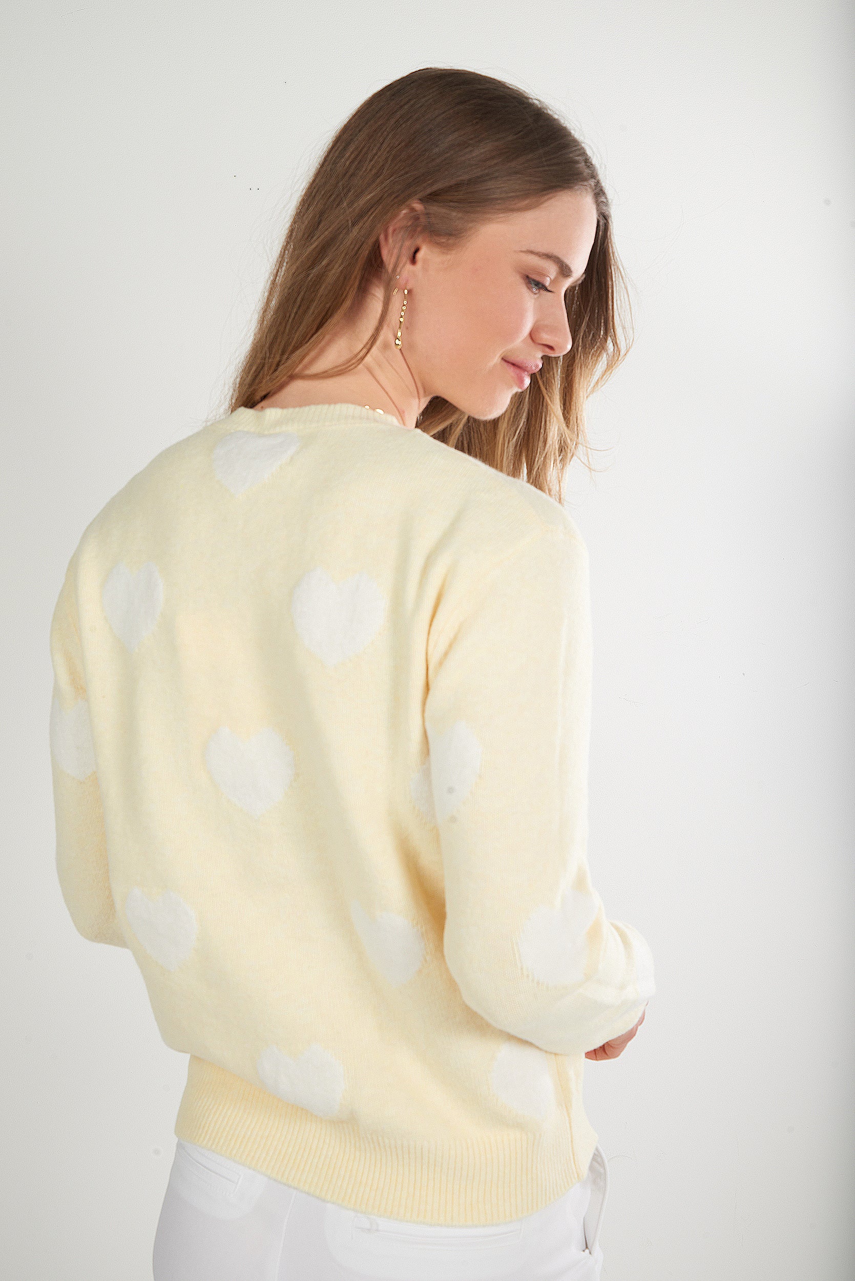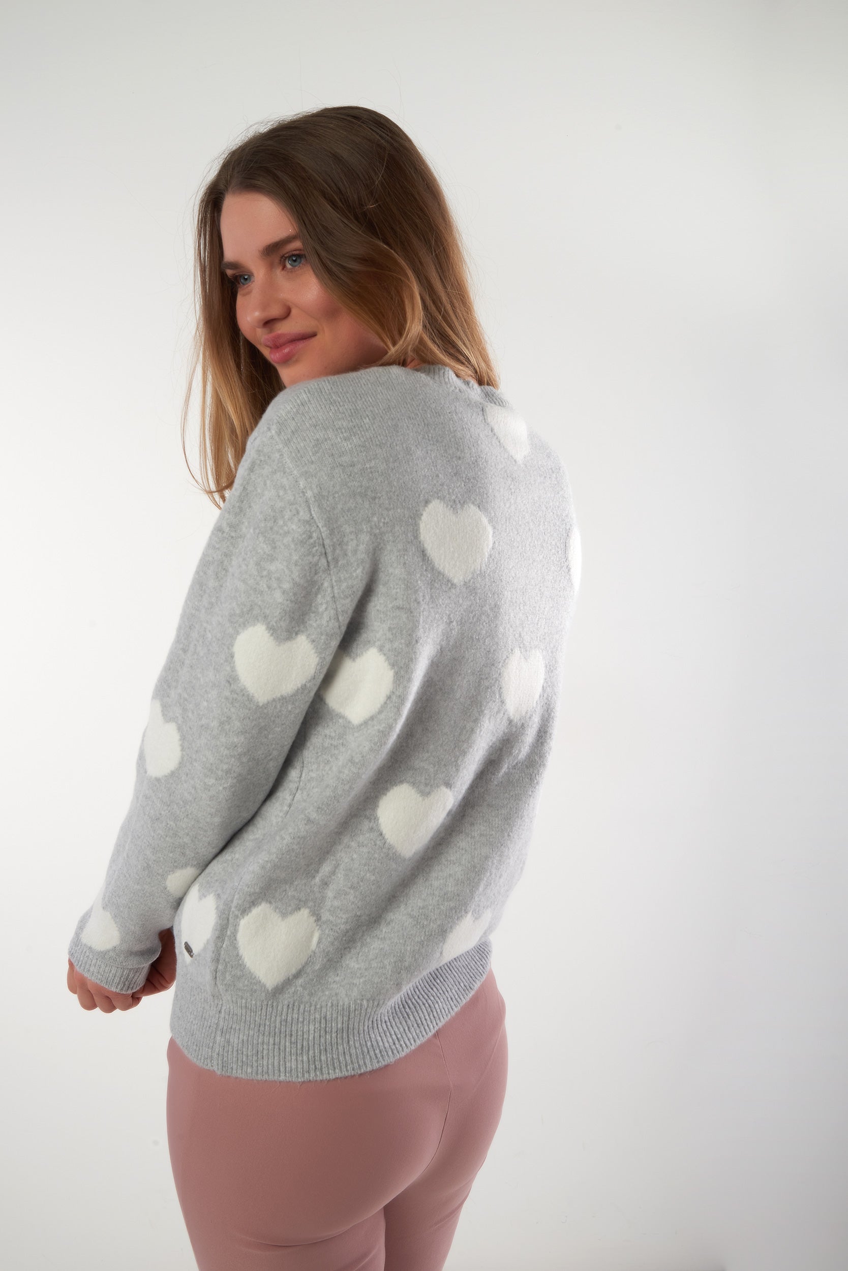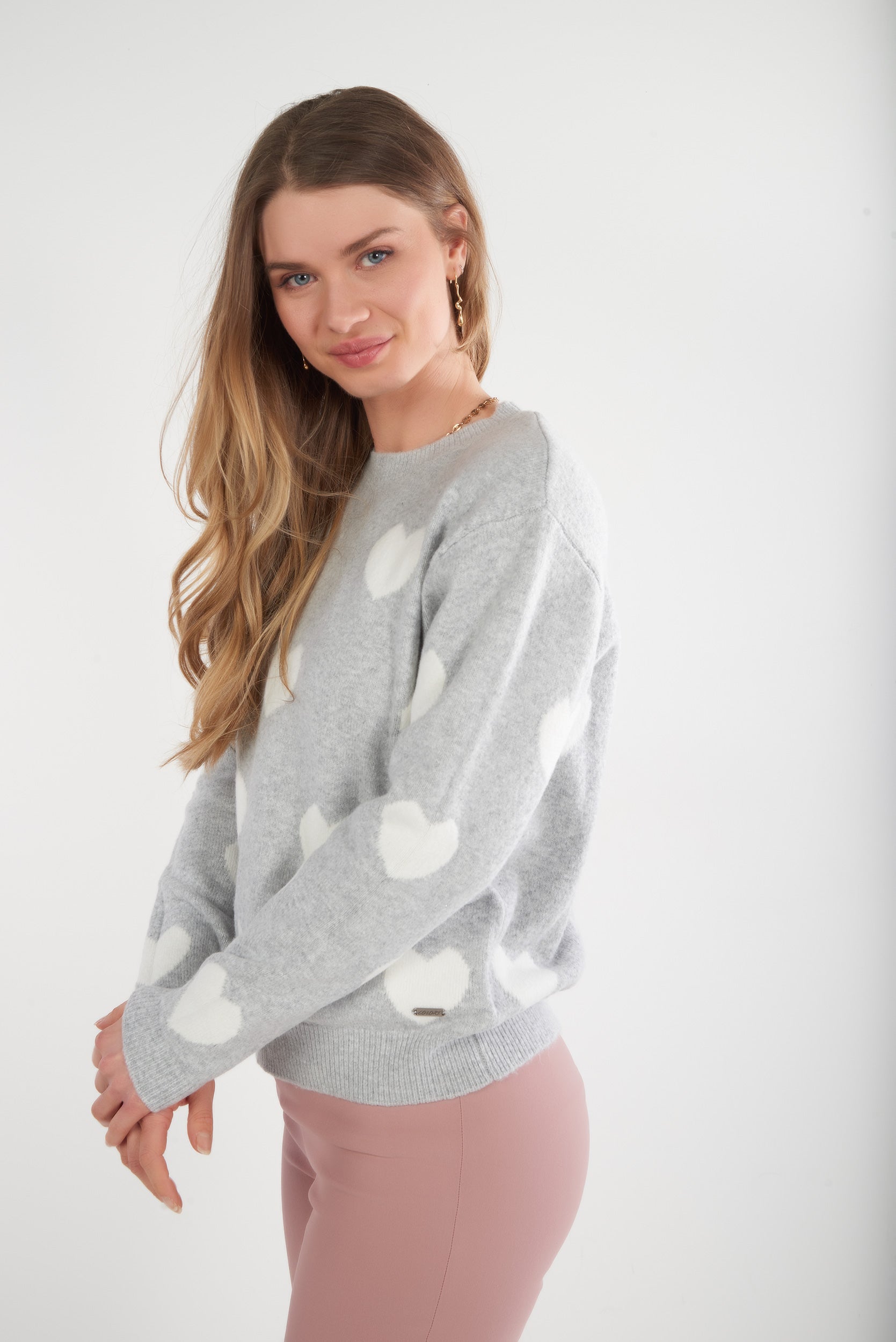 Ce chandail au motif cœurs délicats apporte une touche de douceur et de romantisme à votre garde-robe. Confectionné dans une maille douce, chaude et confortable, il est parfait pour les journées fraîches tout en restant léger à porter.