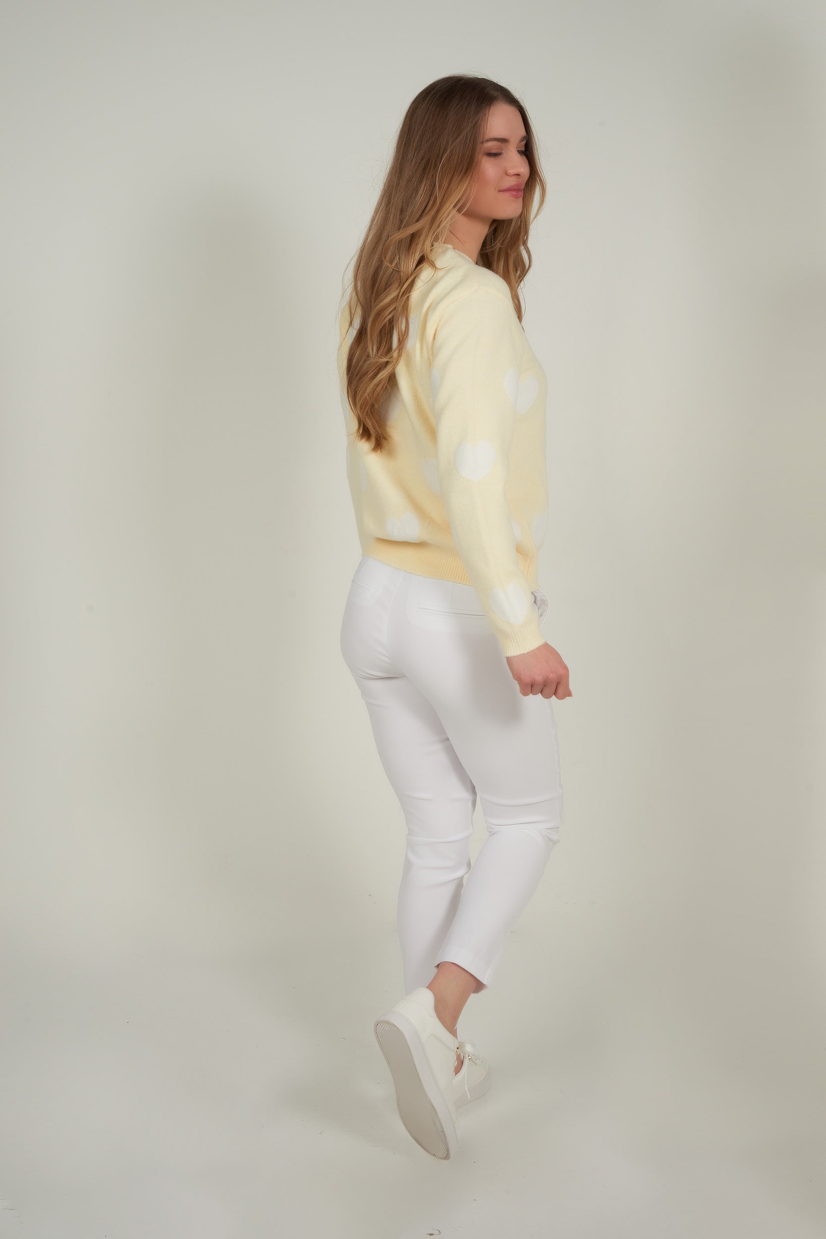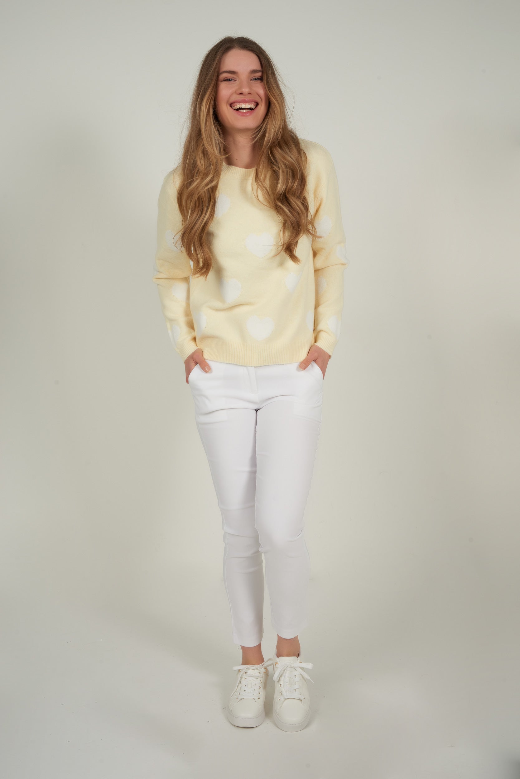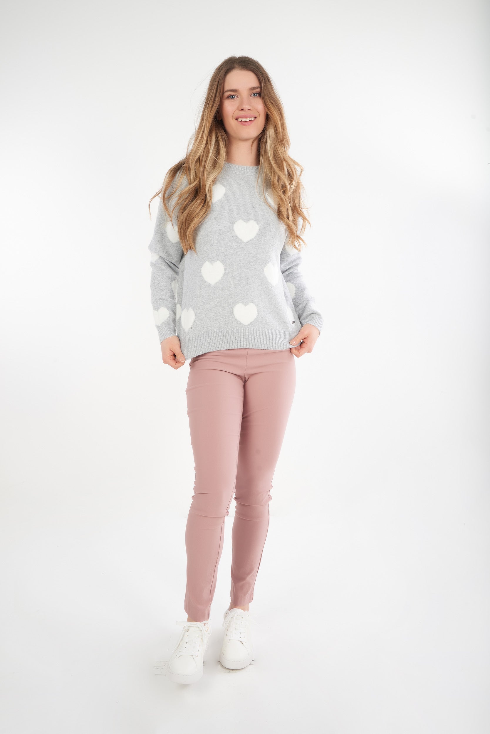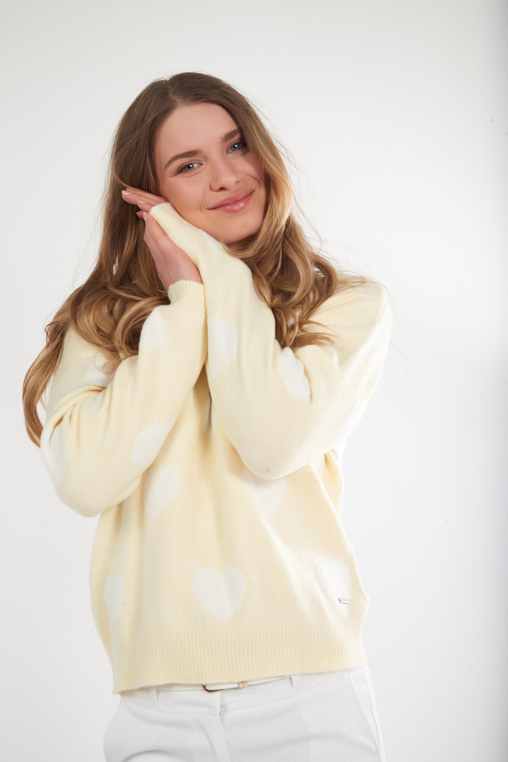 Ce chandail au motif cœurs délicats apporte une touche de douceur et de romantisme à votre garde-robe. Confectionné dans une maille douce, chaude et confortable, il est parfait pour les journées fraîches tout en restant léger à porter.