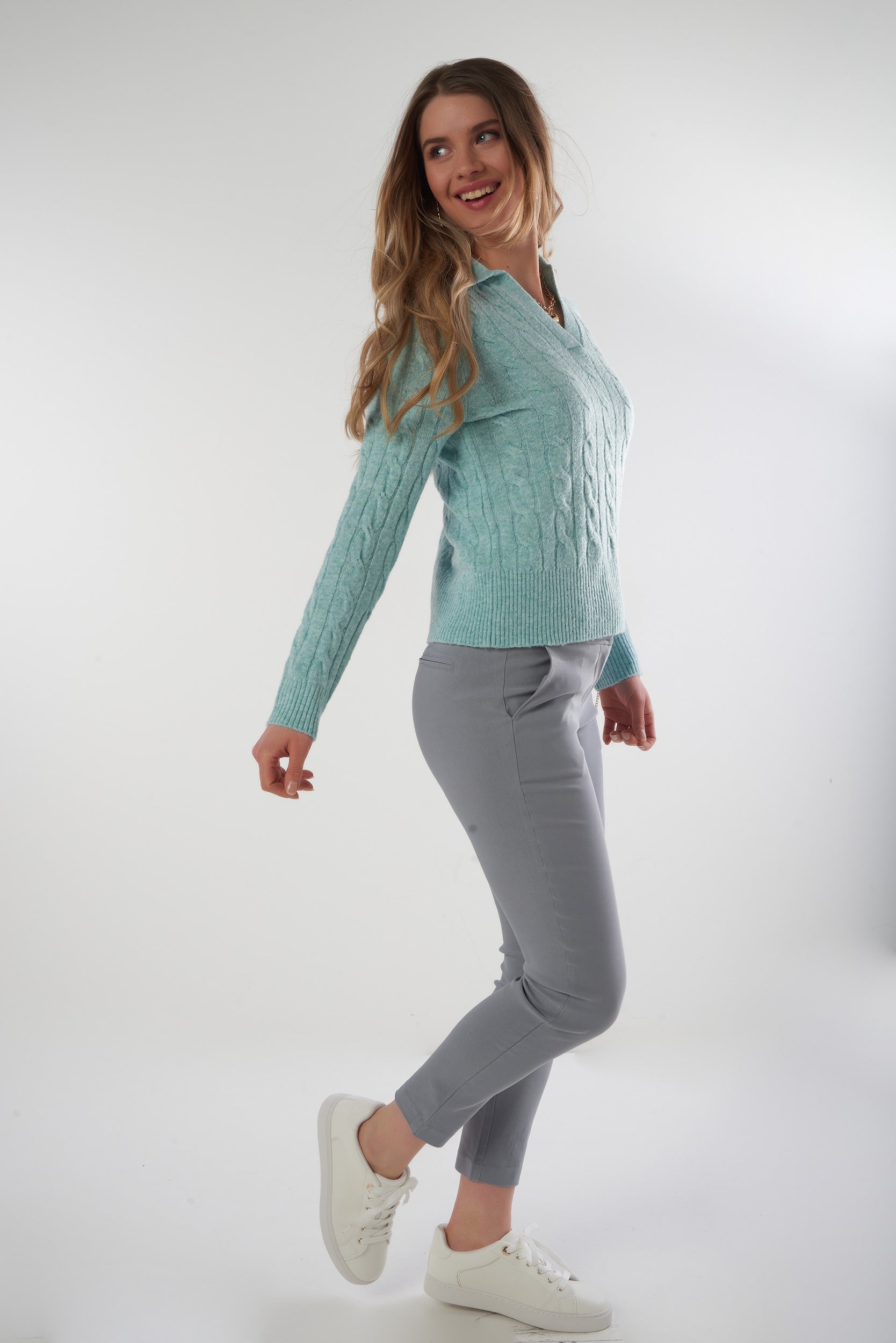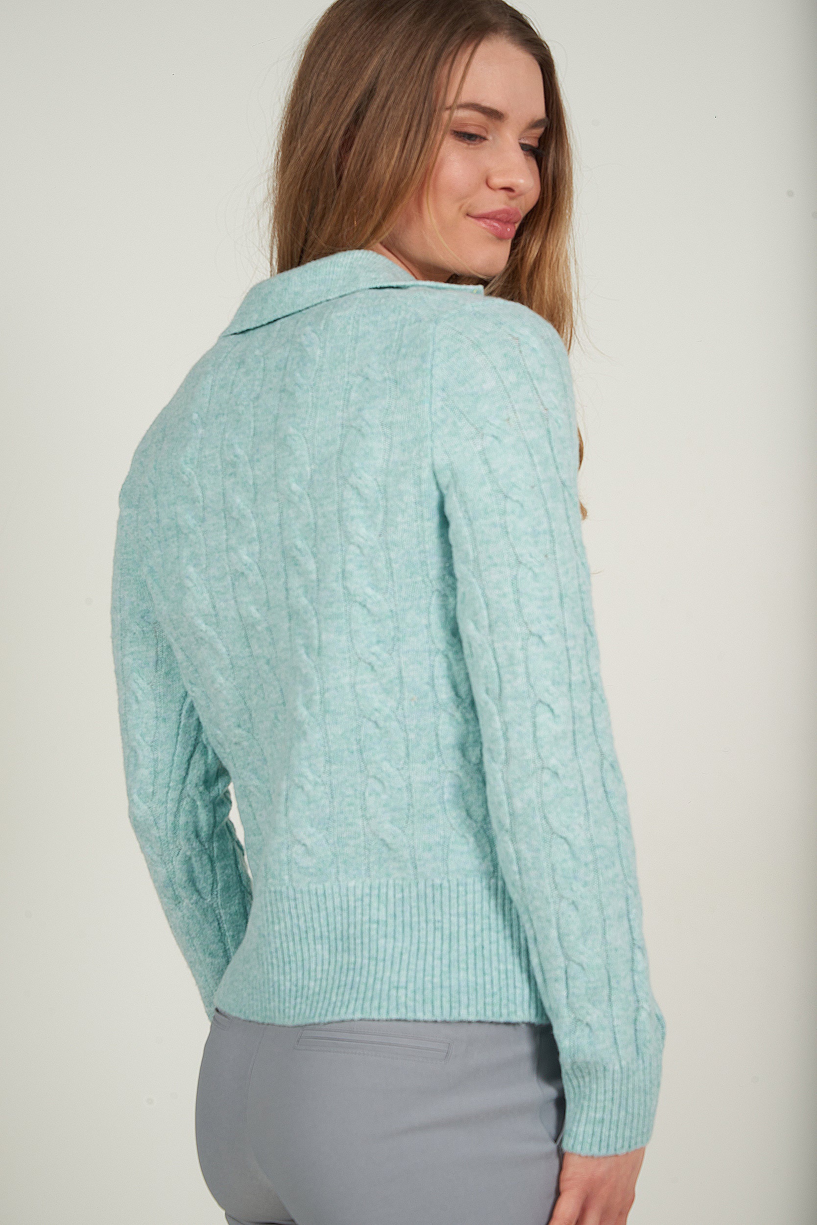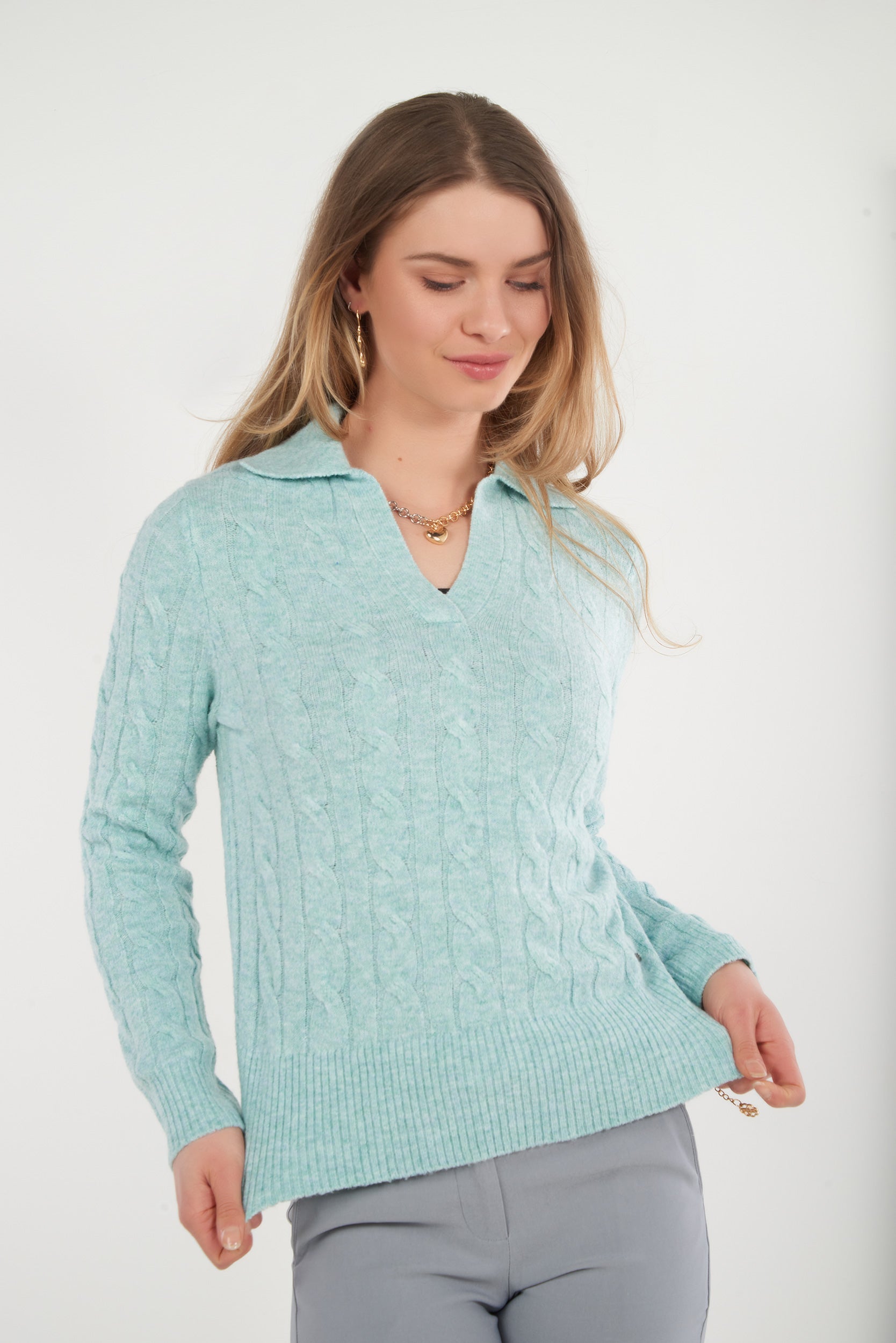 Ce chandail en maille torsadée séduit par son style classique et intemporel, parfait pour une allure élégante au quotidien. Sa texture douce, chaude et réconfortante enveloppe le corps avec un confort absolu, idéal pour la saison fraîche.
