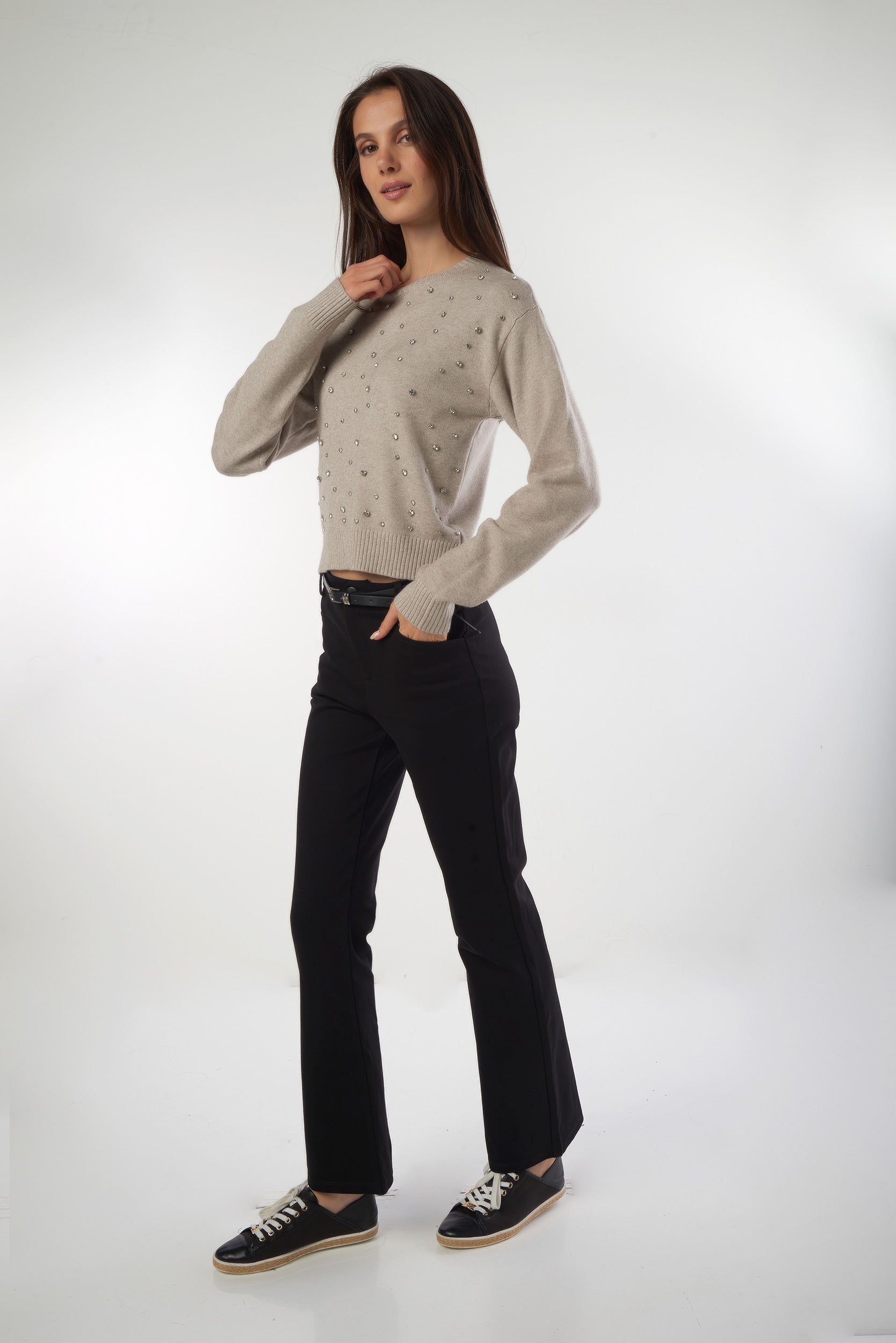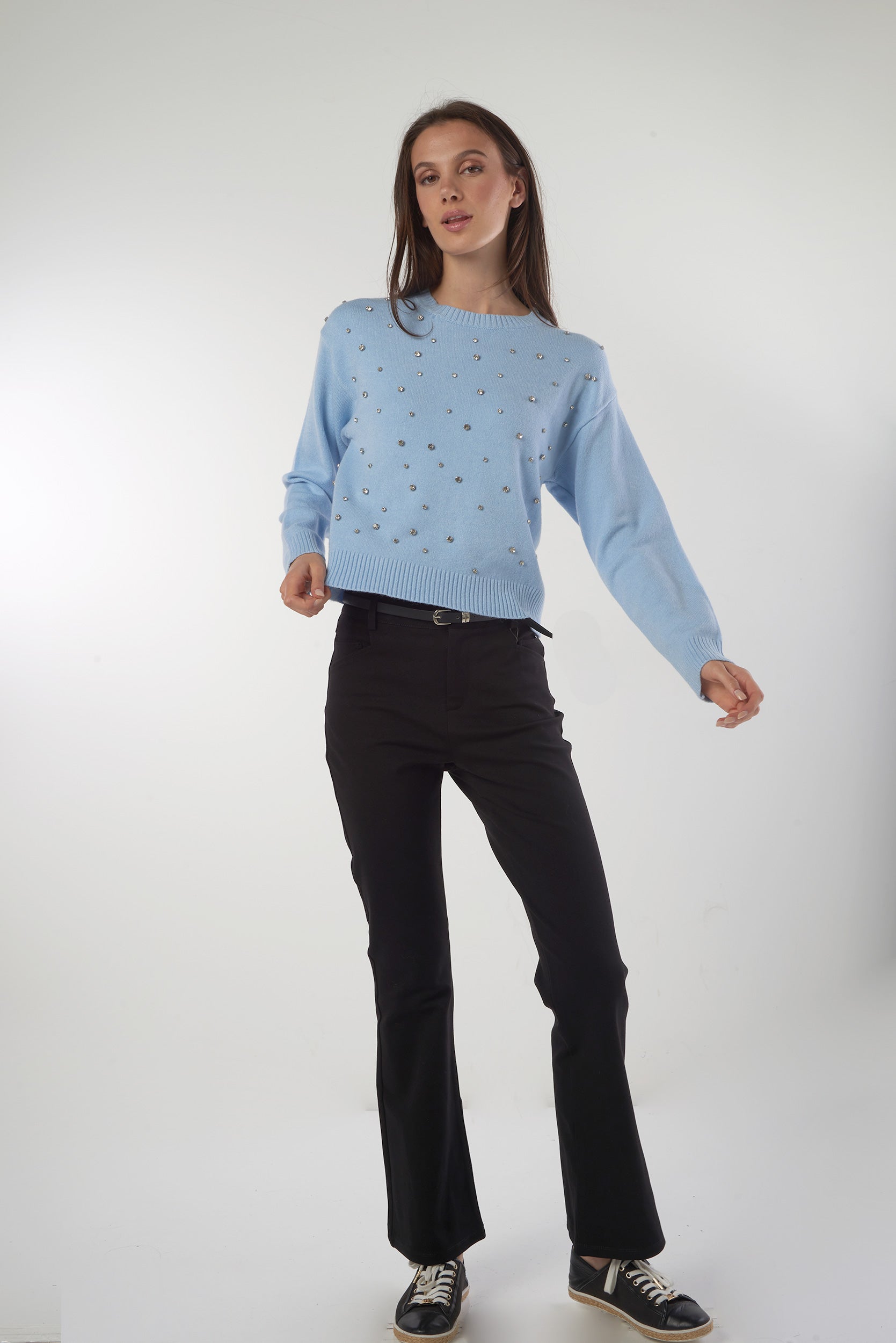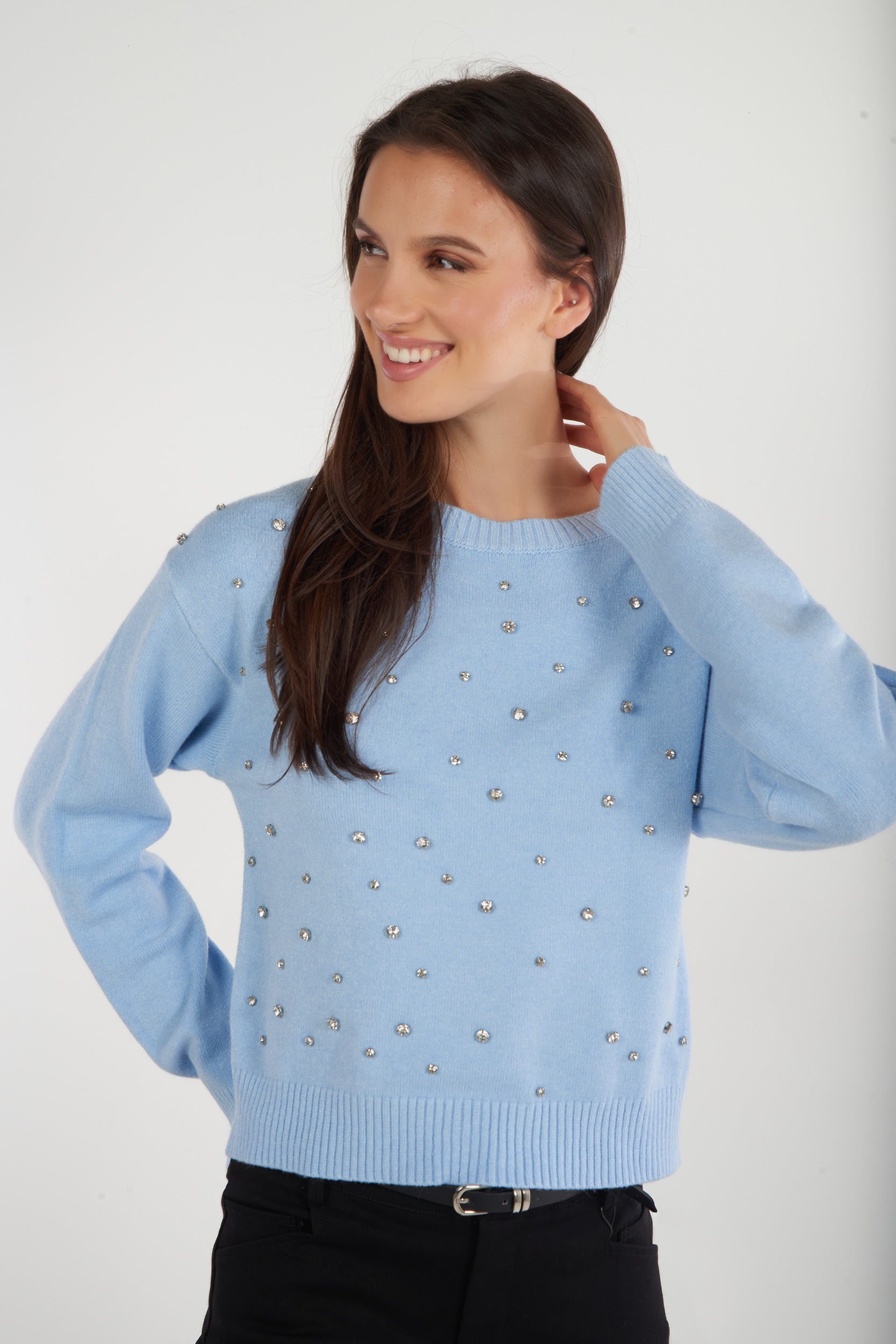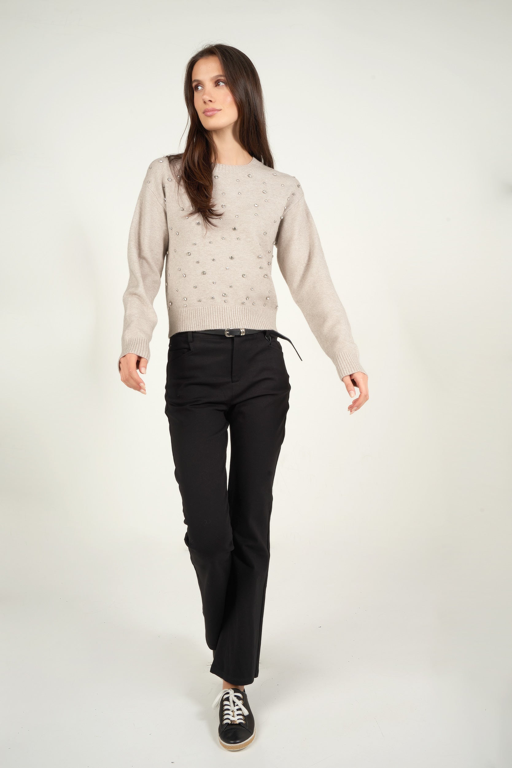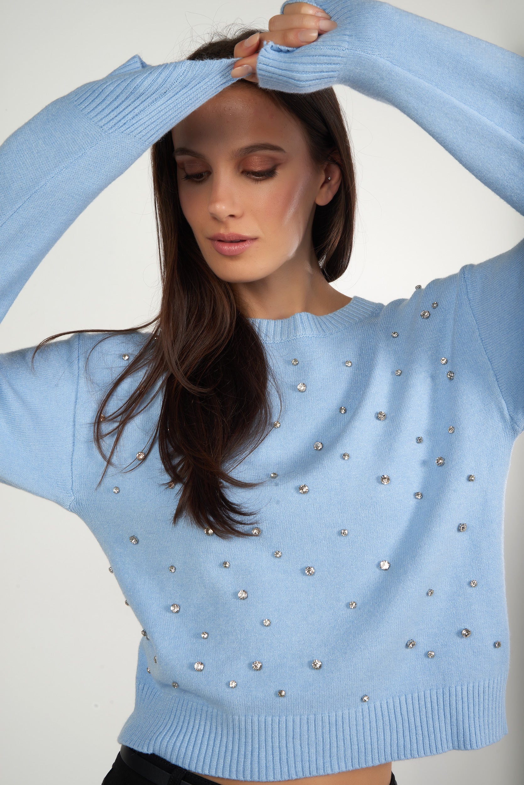 Chandail col rond avec pierres - FS099 - (E-A9)