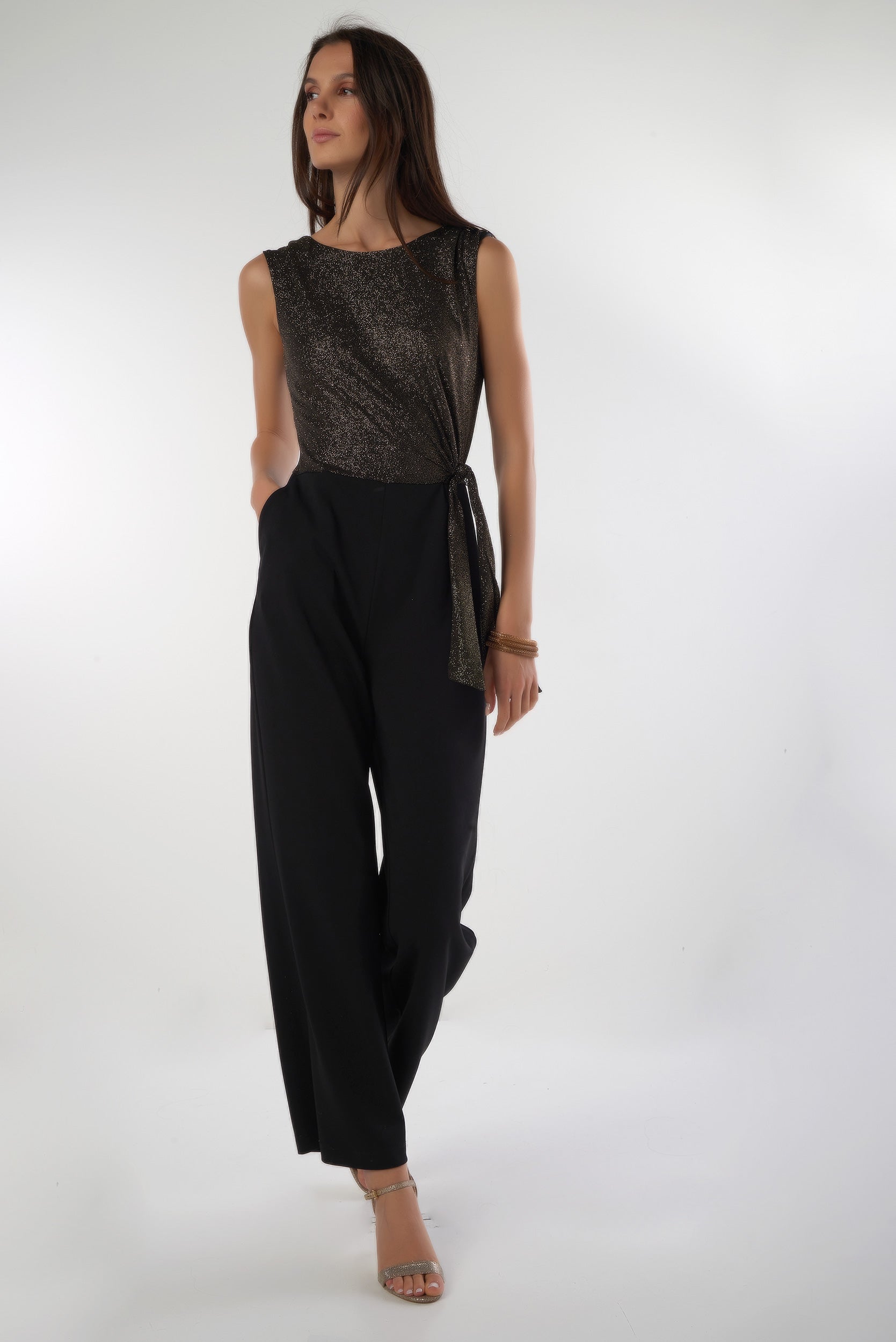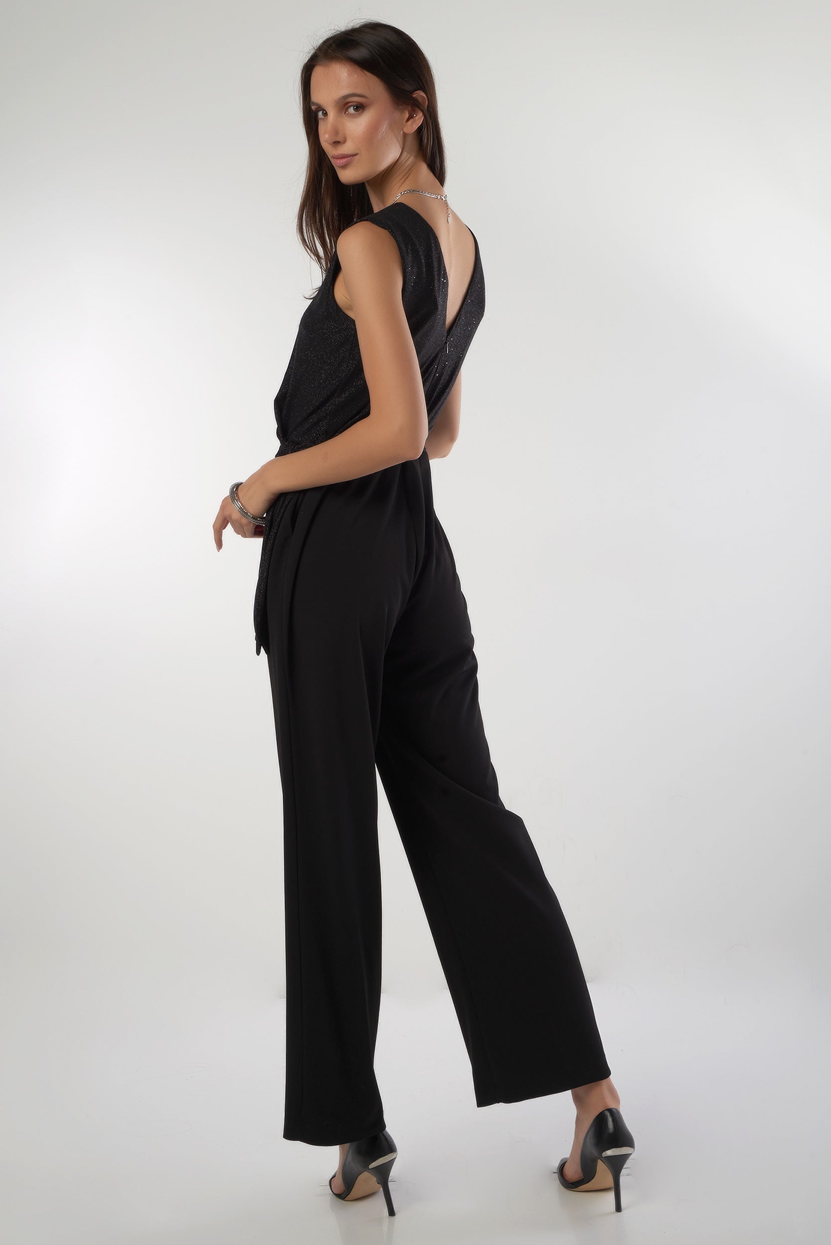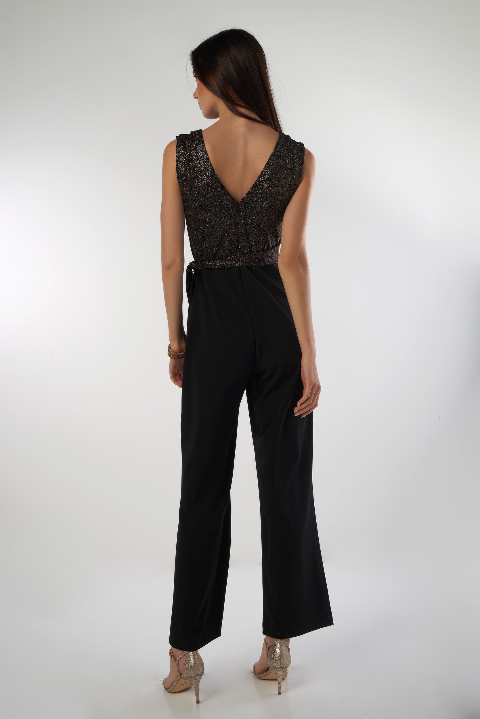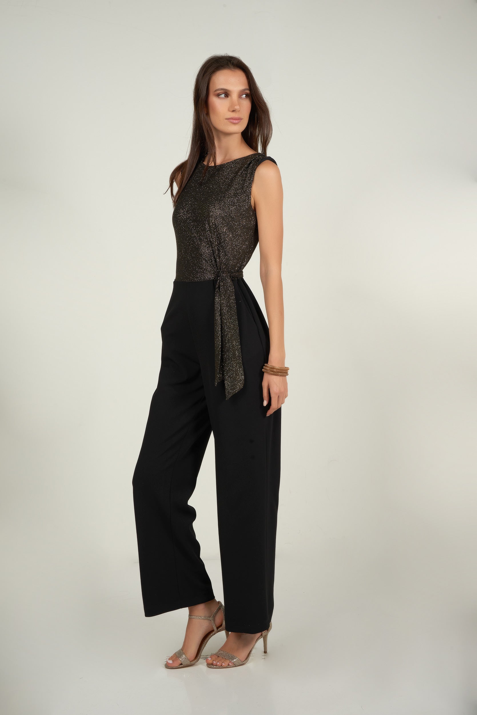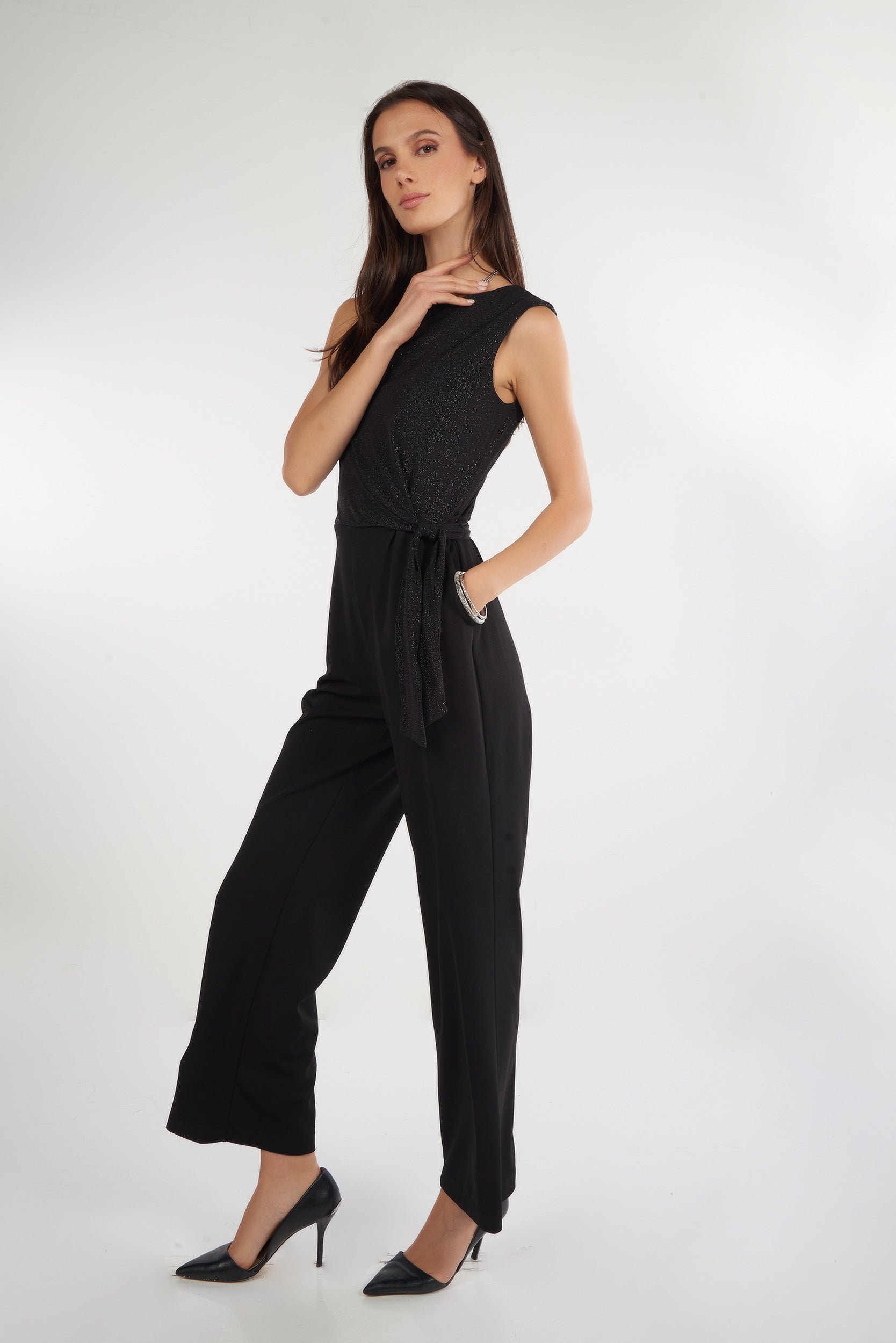 Vos soirées festives n'ont jamais été aussi stylées qu'avec notre combinaison pour femme, sans manches, Elisabeth2. Dotée de larges bretelles, d'un haut brillant, d'une encolure ronde, de deux poches, de jambes larges et d'une ceinture brillante à nouer, cette combinaison est la pièce idéale pour combiner style, élégance et confort!