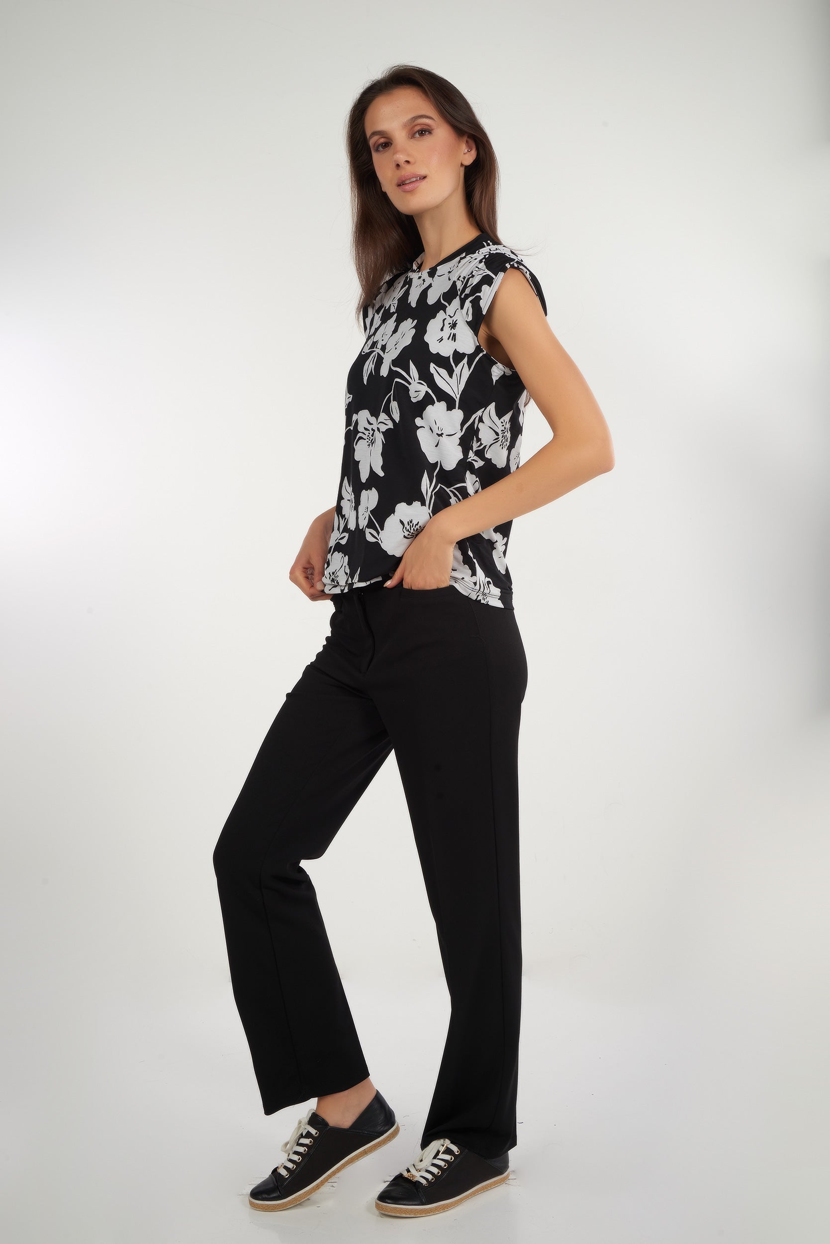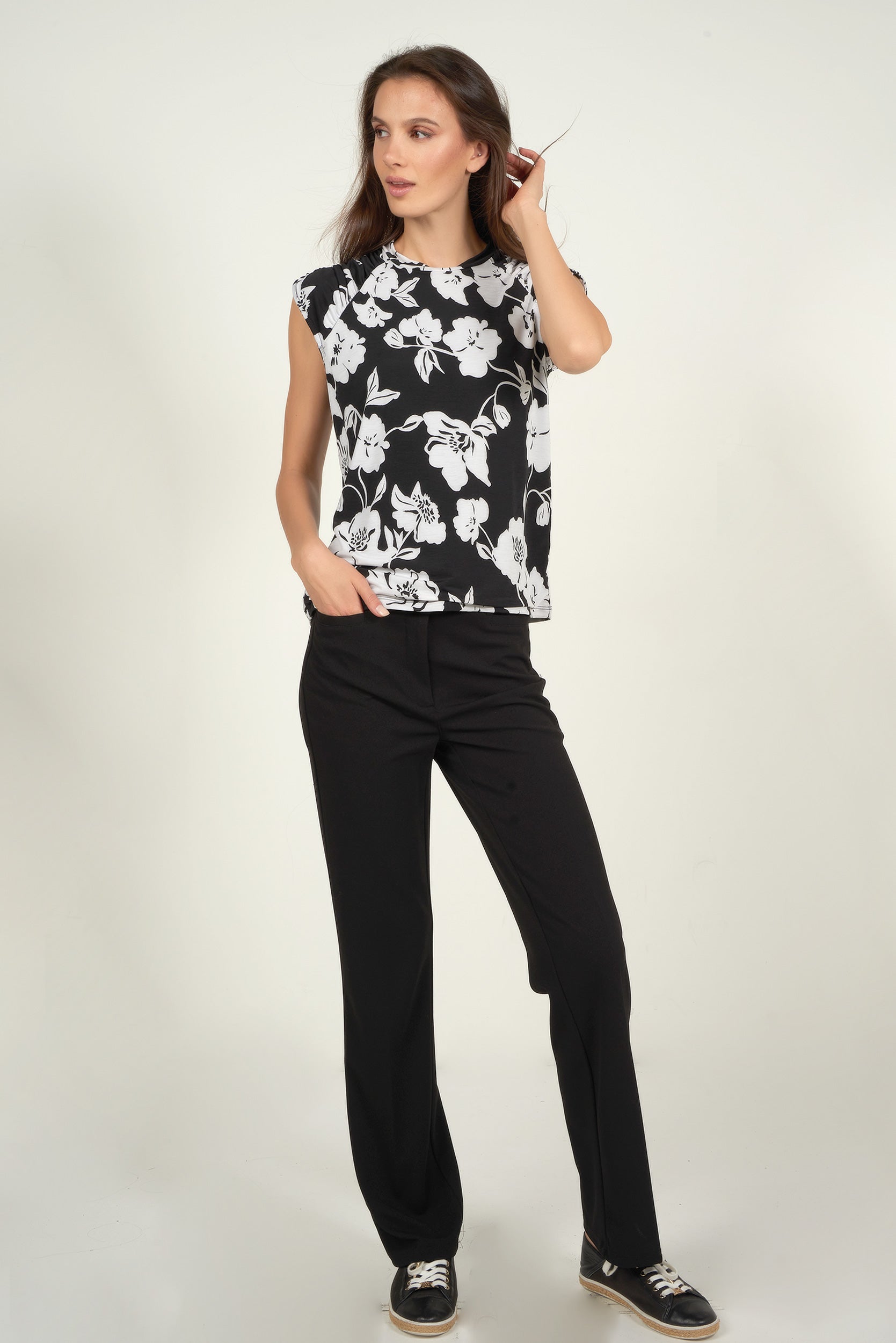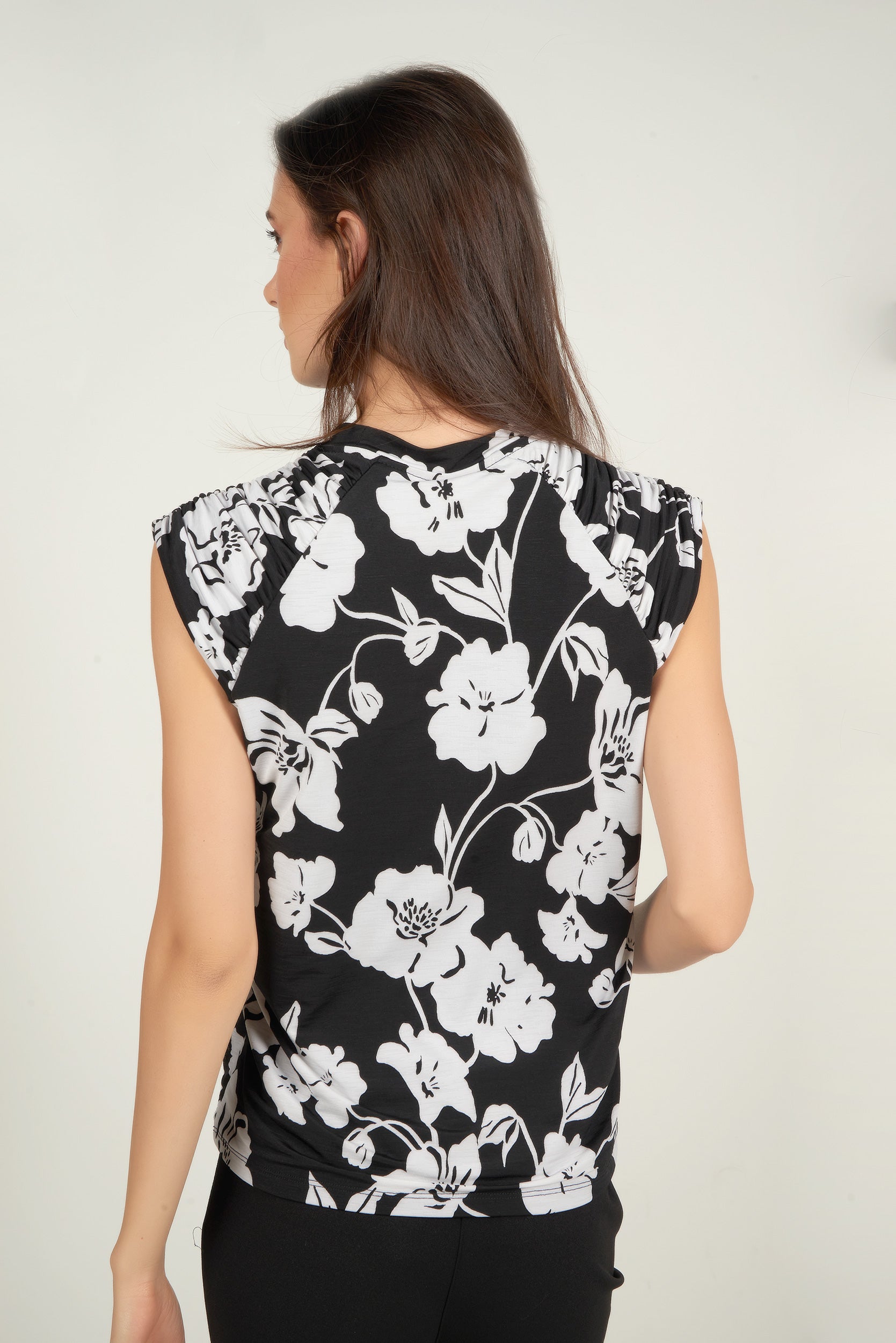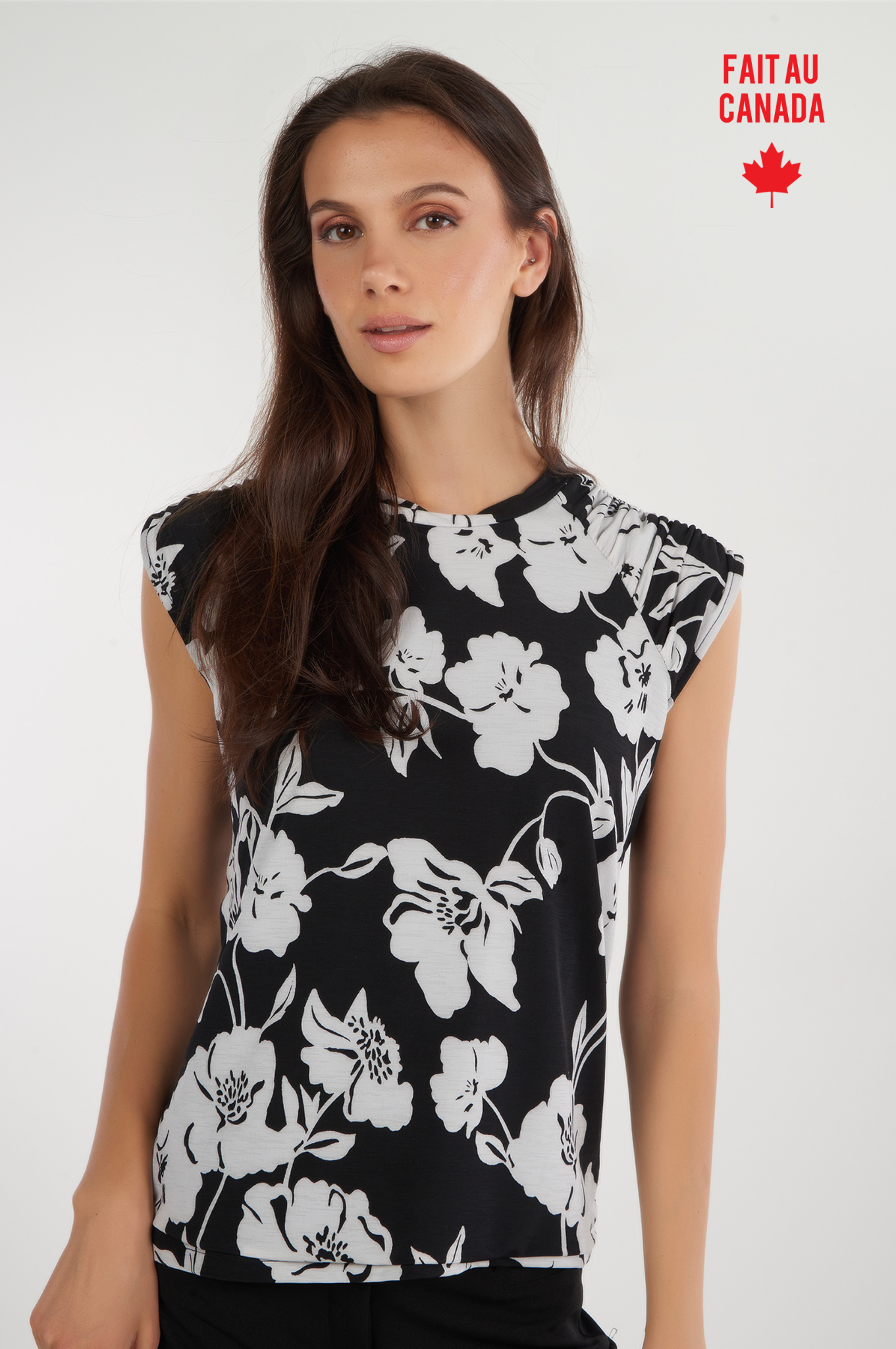 Féminin et polyvalent, découvrez notre hauts pour femme Diona. Ce haut pour femme, sans manches, avec un col rond, une coupe évasée, des épaules froncées et un imprimé fleuri apportera une touche d’élégance à vos tenues, qu’il soit porté avec un jean pour un look décontracté ou avec un pantalon habillé pour un style plus sophistiqué.