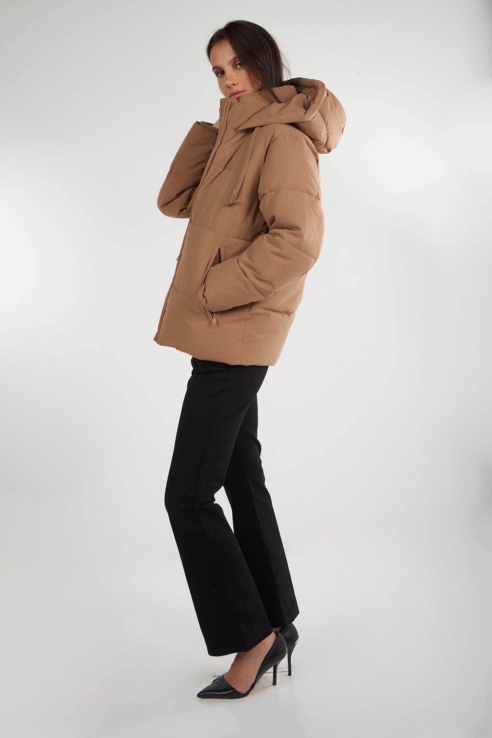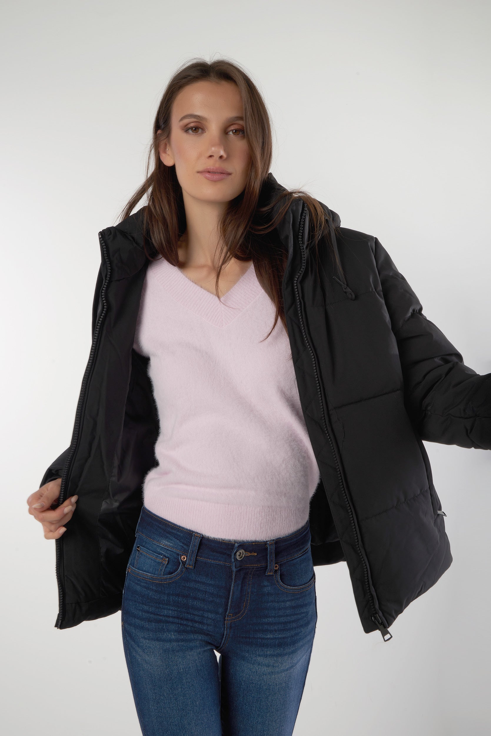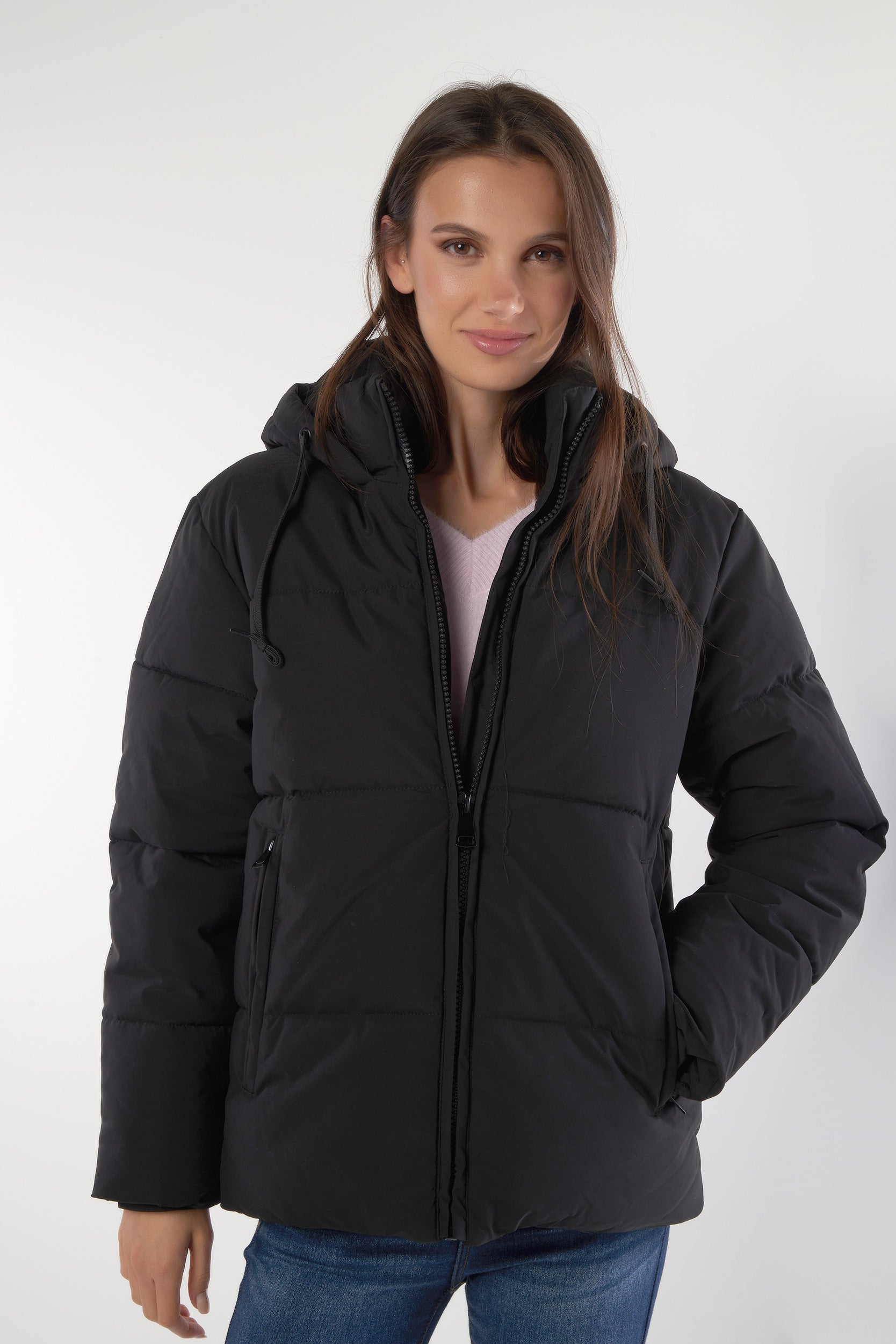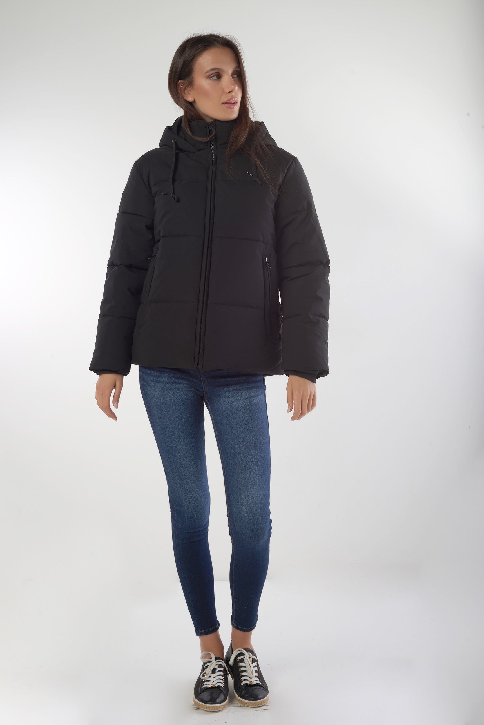 Combinez style et confort avec nos manteaux pour femme et, spécialement, le manteau pour femme Maina. Doté d'un col classique, d'une fermeture par zip, d'une coupe courte et d'un style puffer, ce manteau vous permettra de traverser la saison sans compromis.