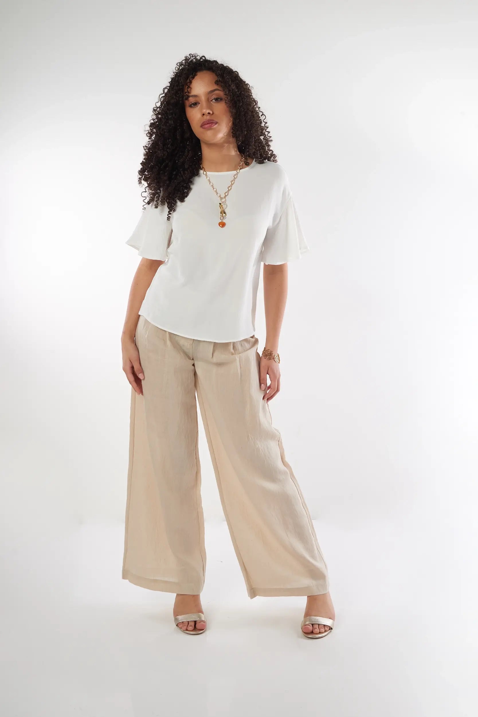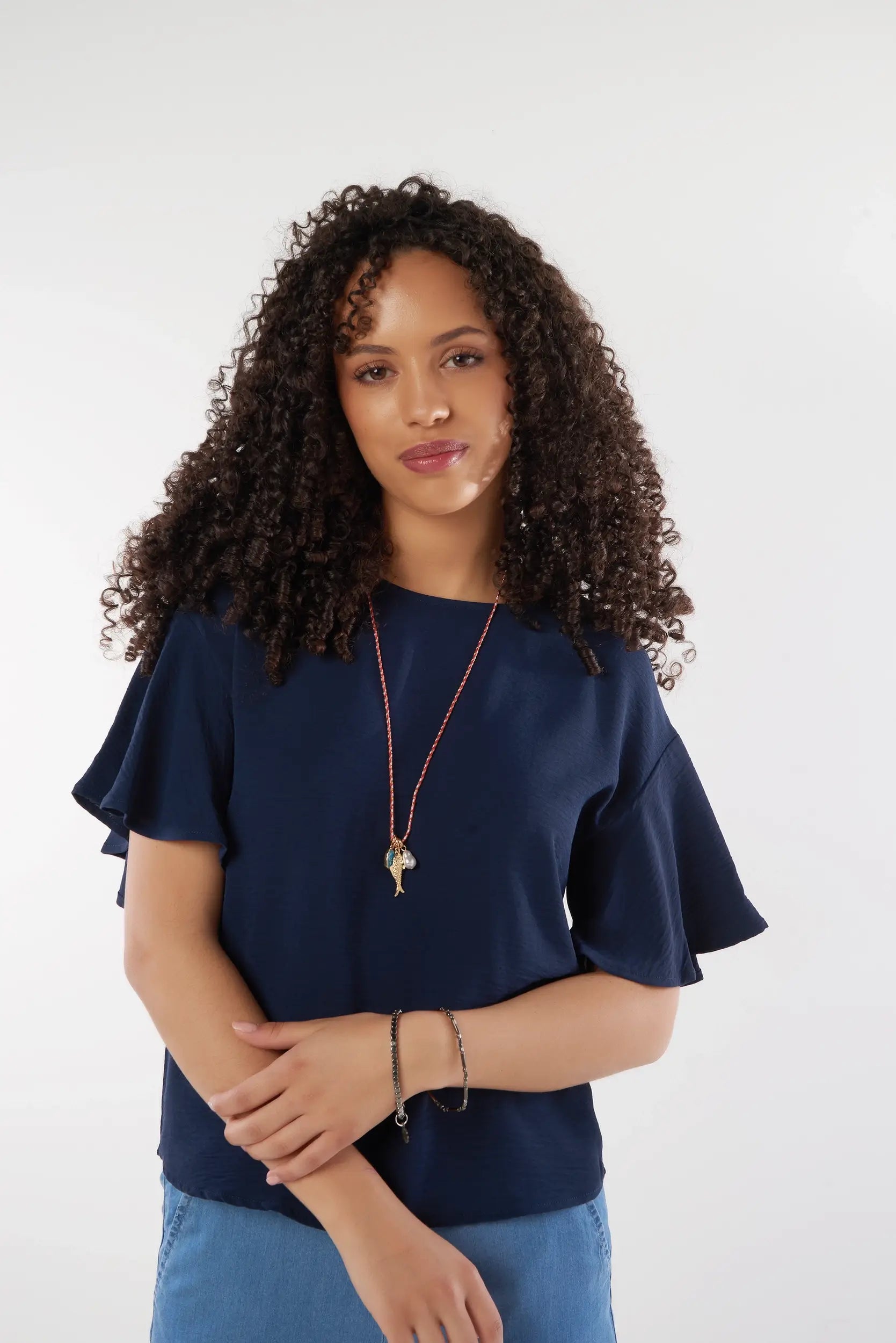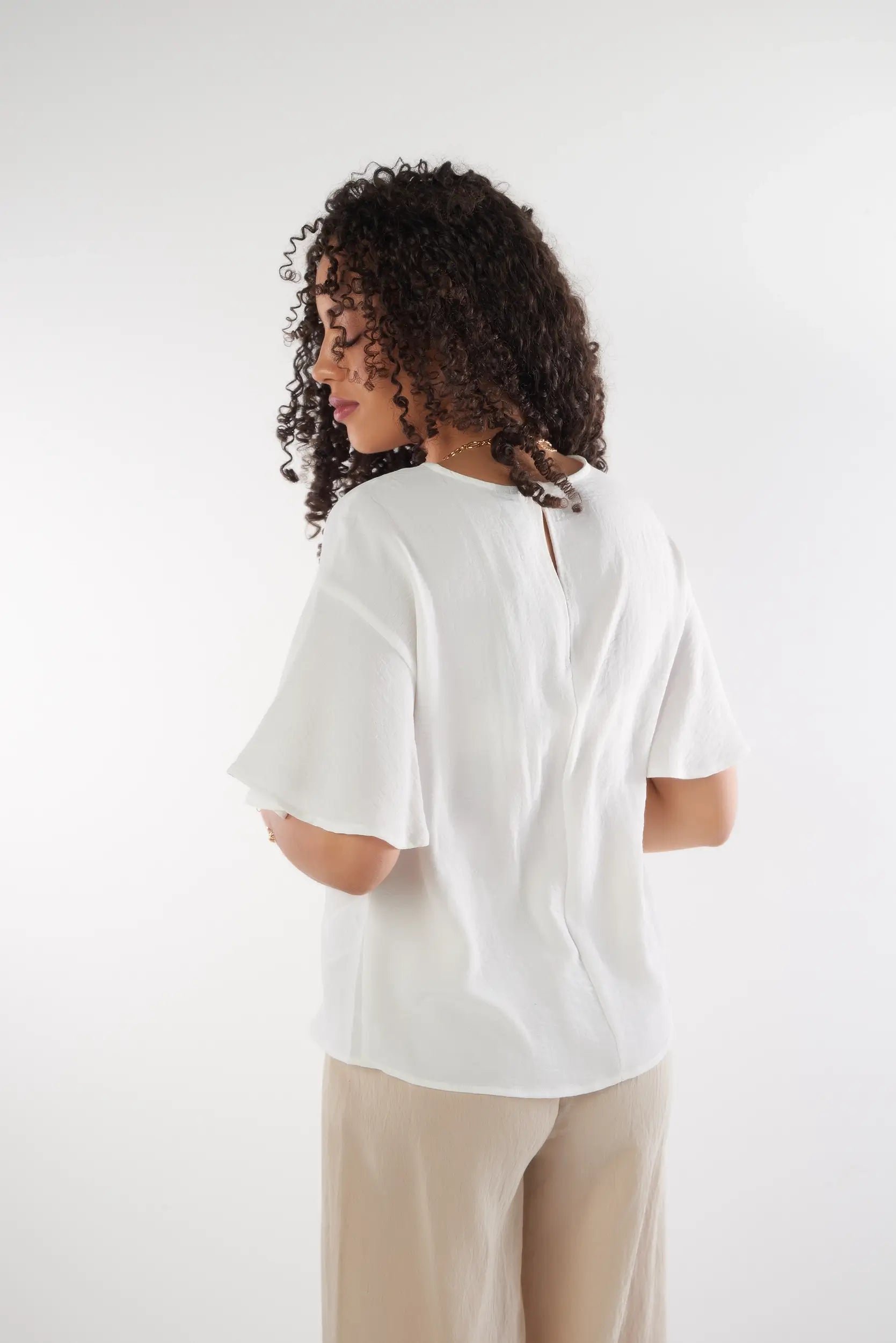 This elegant women’s top with flutter sleeves adds a soft and feminine touch to your outfit. Made from a light and flowy fabric, this short sleeve women’s top ensures optimal comfort while offering a refined and modern look. Its relaxed fit and delicate finishes make it a must-have trendy flowy top for chic styling.