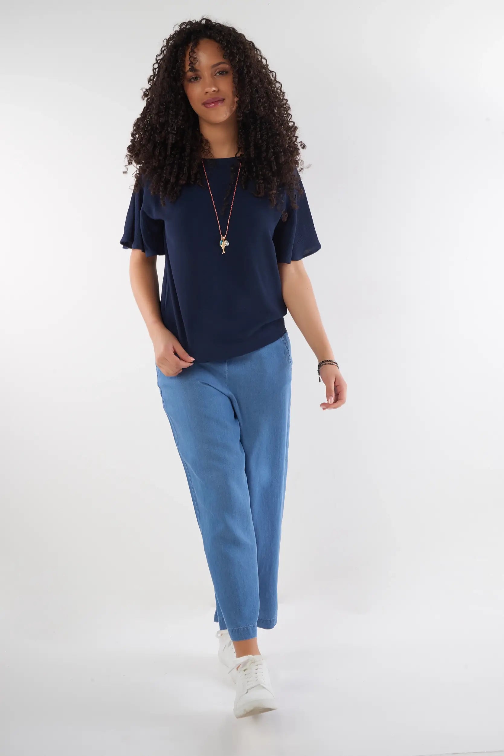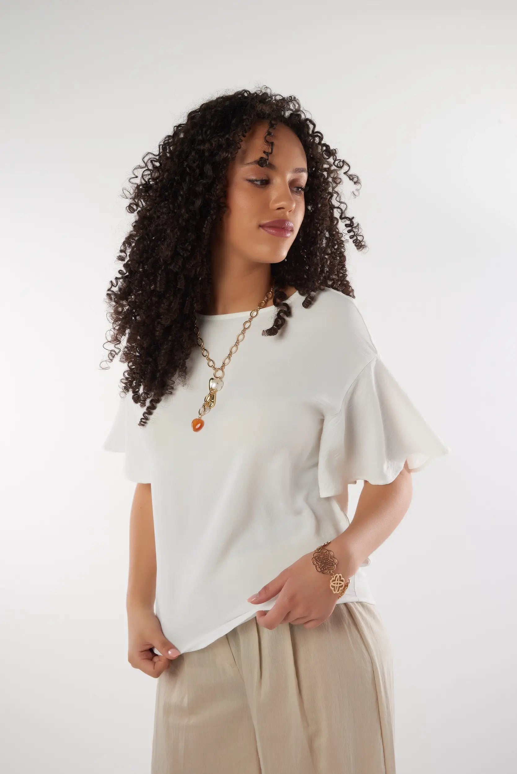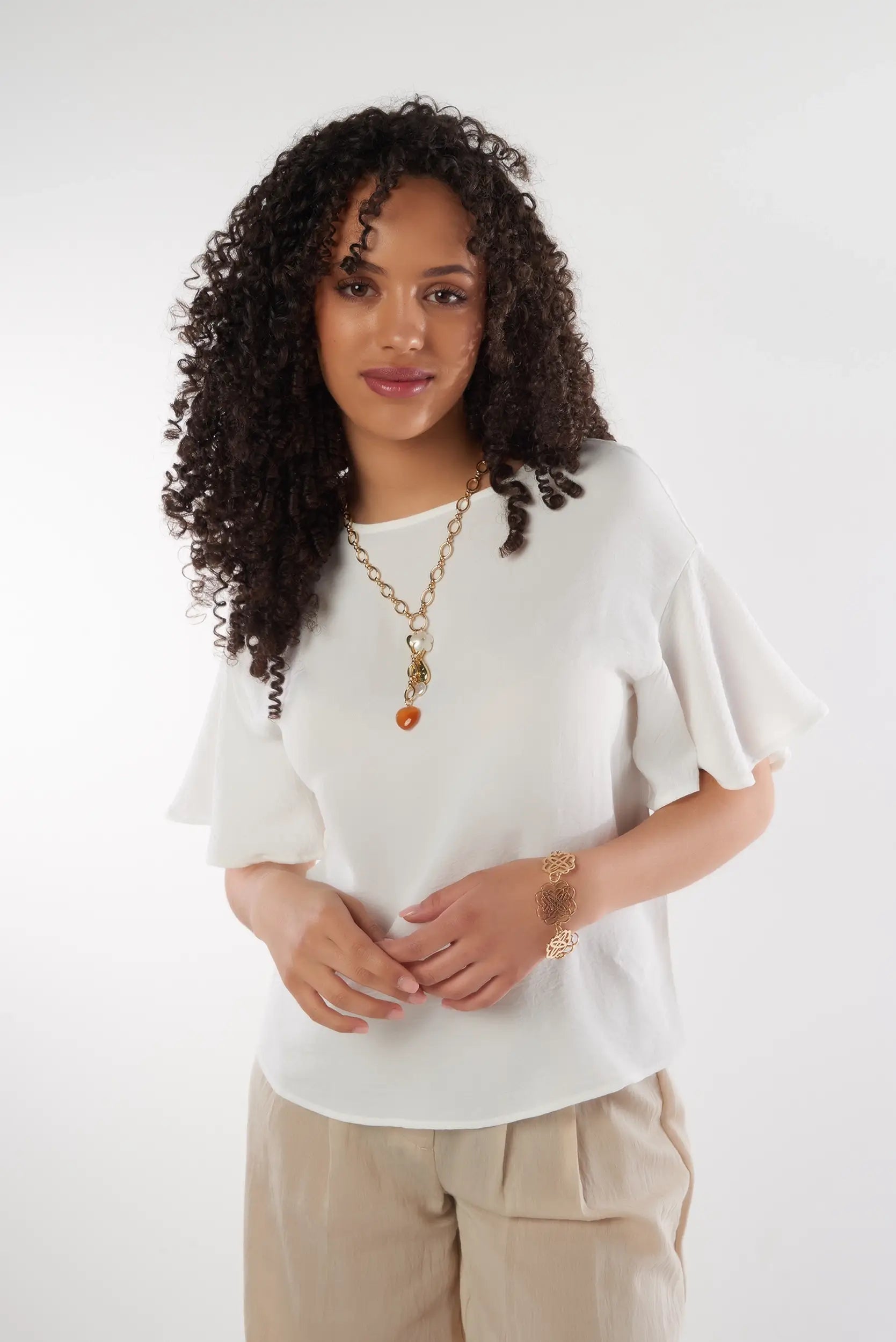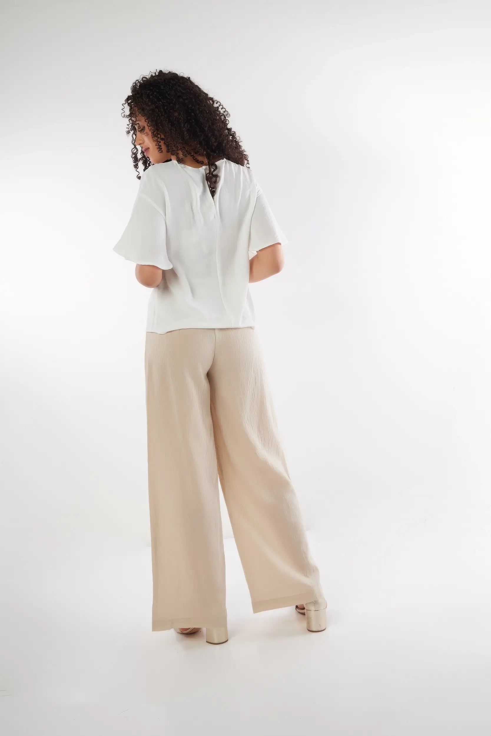 This elegant women’s top with flutter sleeves adds a soft and feminine touch to your outfit. Made from a light and flowy fabric, this short sleeve women’s top ensures optimal comfort while offering a refined and modern look. Its relaxed fit and delicate finishes make it a must-have trendy flowy top for chic styling.