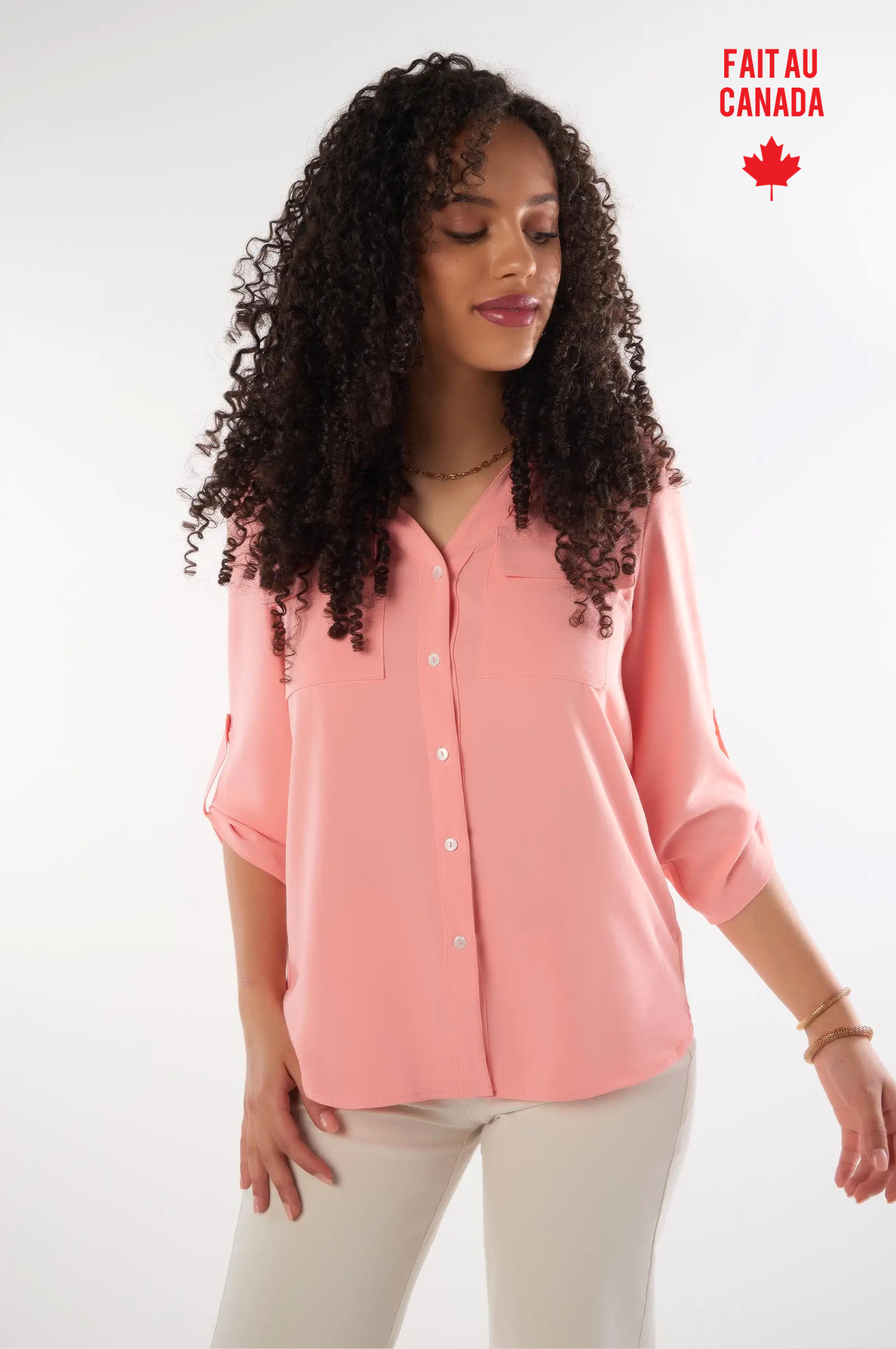 Quick viewSolid-colored blouse with three-quarter sleeves - CARMELA-25 - (R-B9)$69.95$29.95 /BLANC/CASSEMANDARINEROSEVERTAvailable in 4 colorsSale