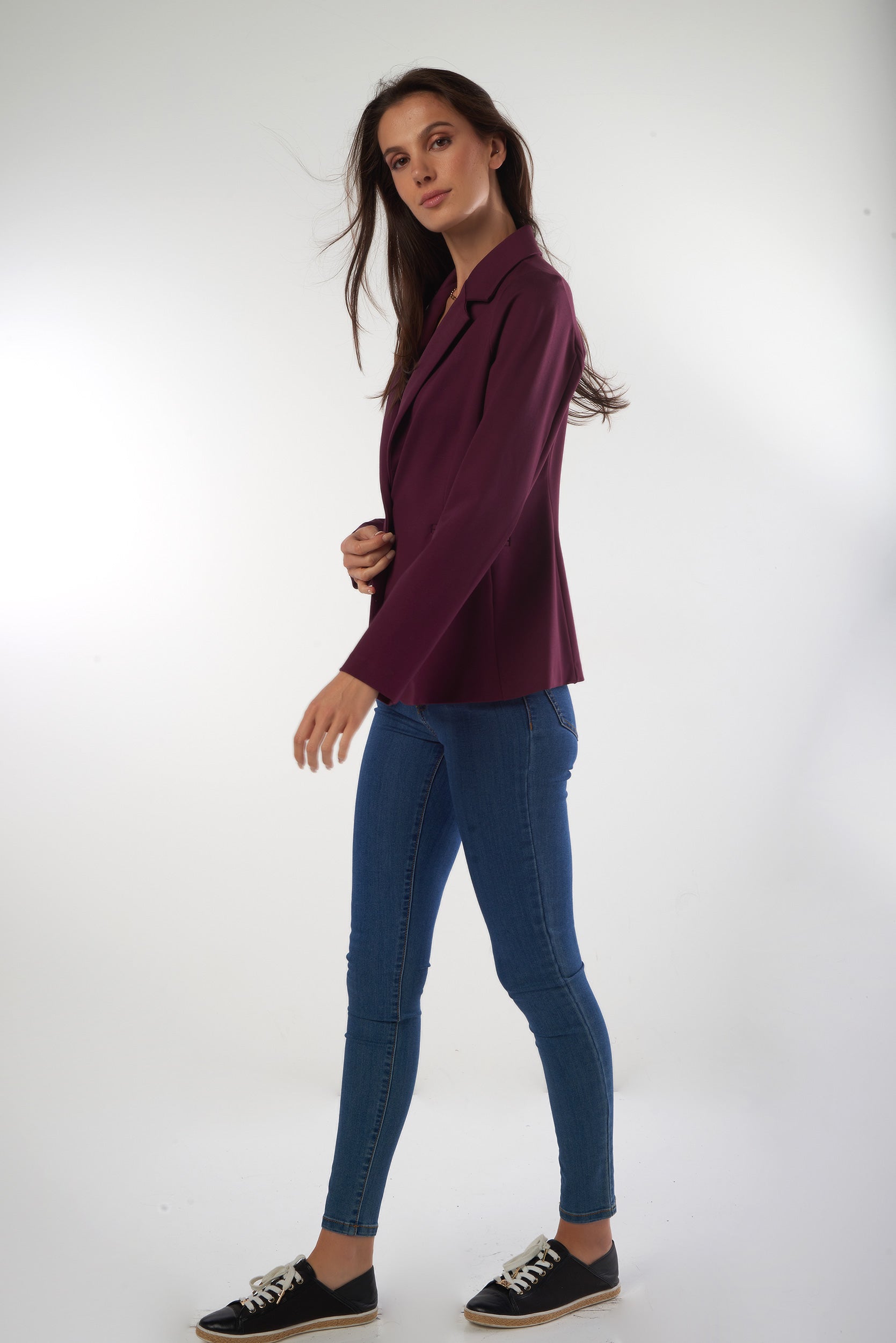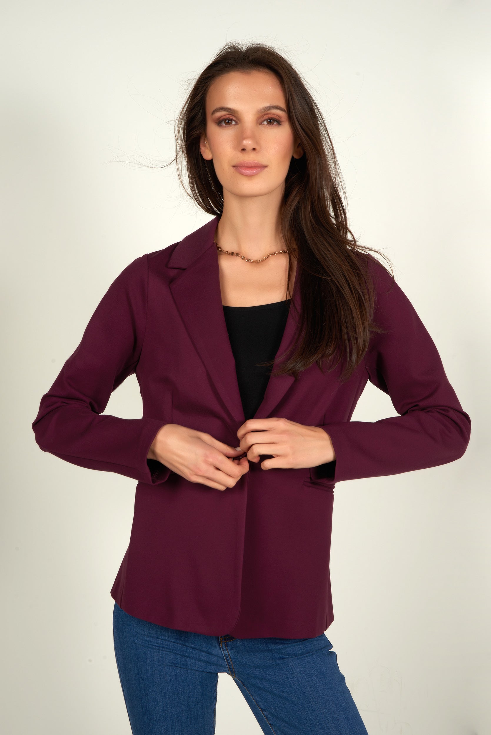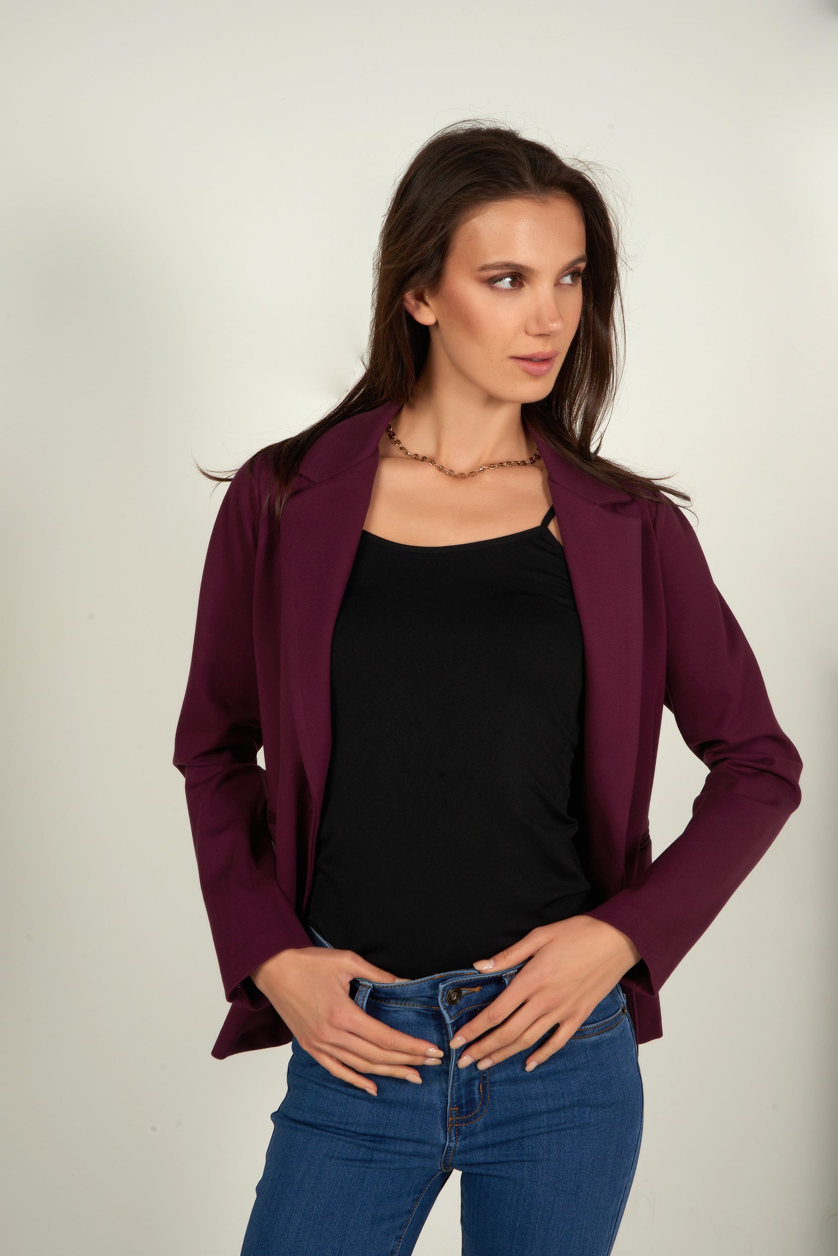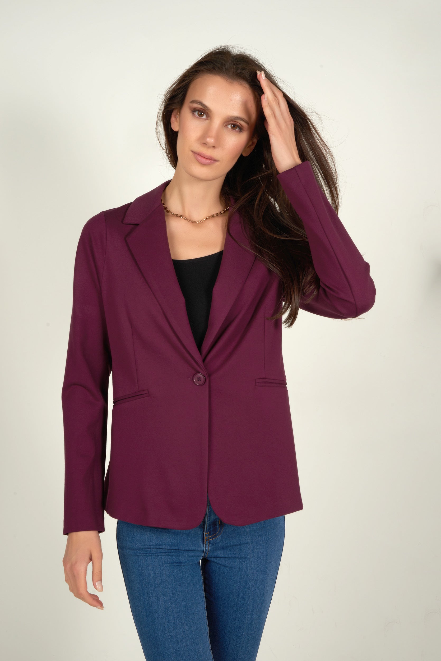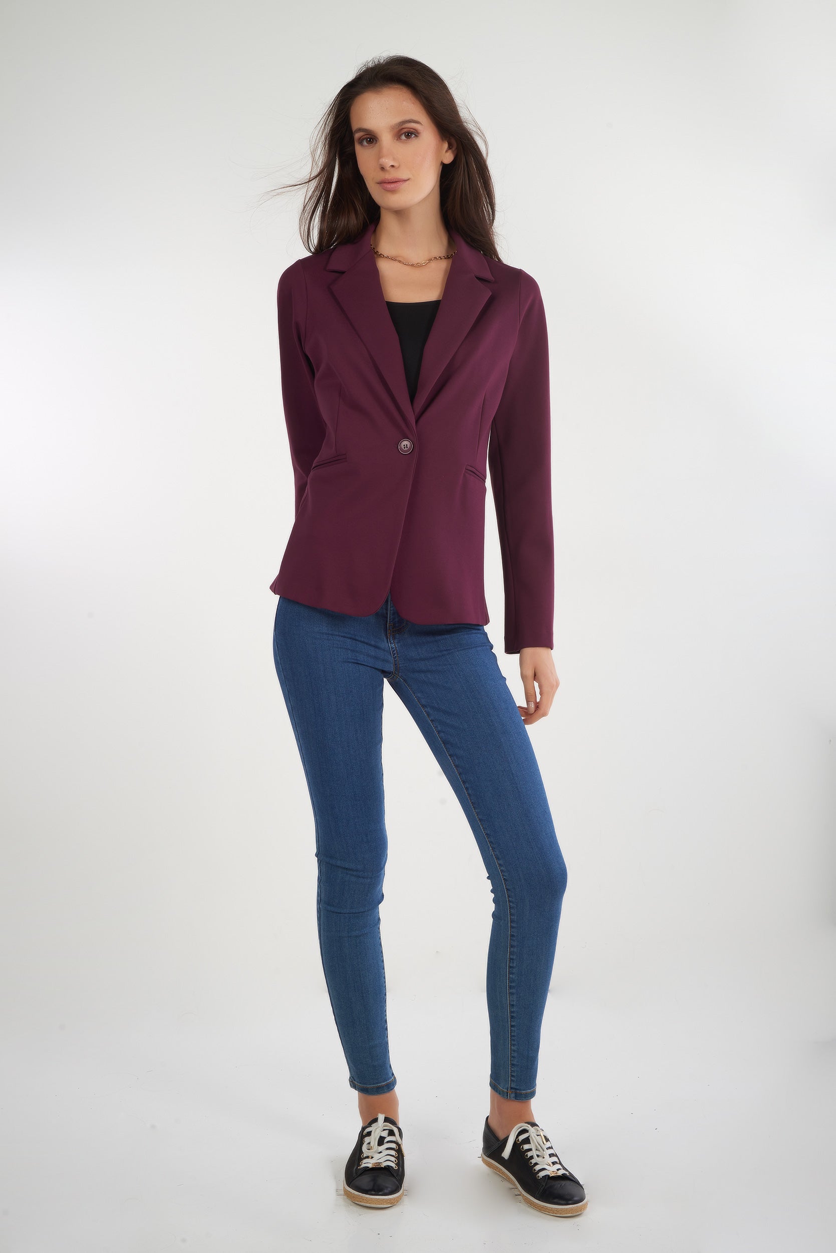 Discover your new essential for layering and office outfits: our classic blazer, the FLAVIEWHR women's blazer. A long blazer with long sleeves, a shawl collar, a single-button closure, and two faux pockets. Available in five colors: brown blazer, burgundy blazer, navy blazer, blue blazer, and black blazer.