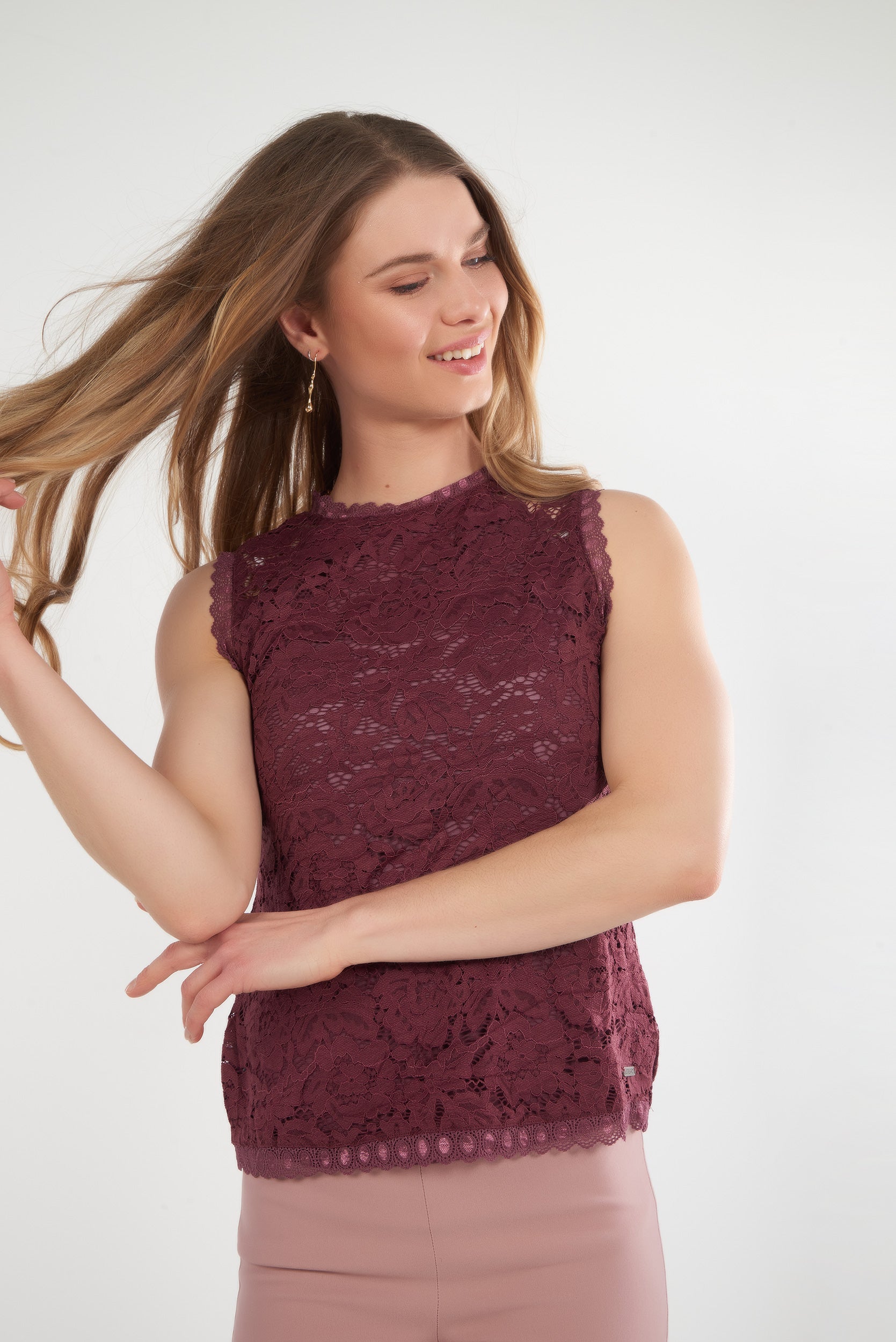 This women’s lace sleeveless top is the perfect piece to add a touch of femininity and refinement to any outfit. Crafted from floral lace fabric, it delivers an elegant, delicate, yet modern look.
