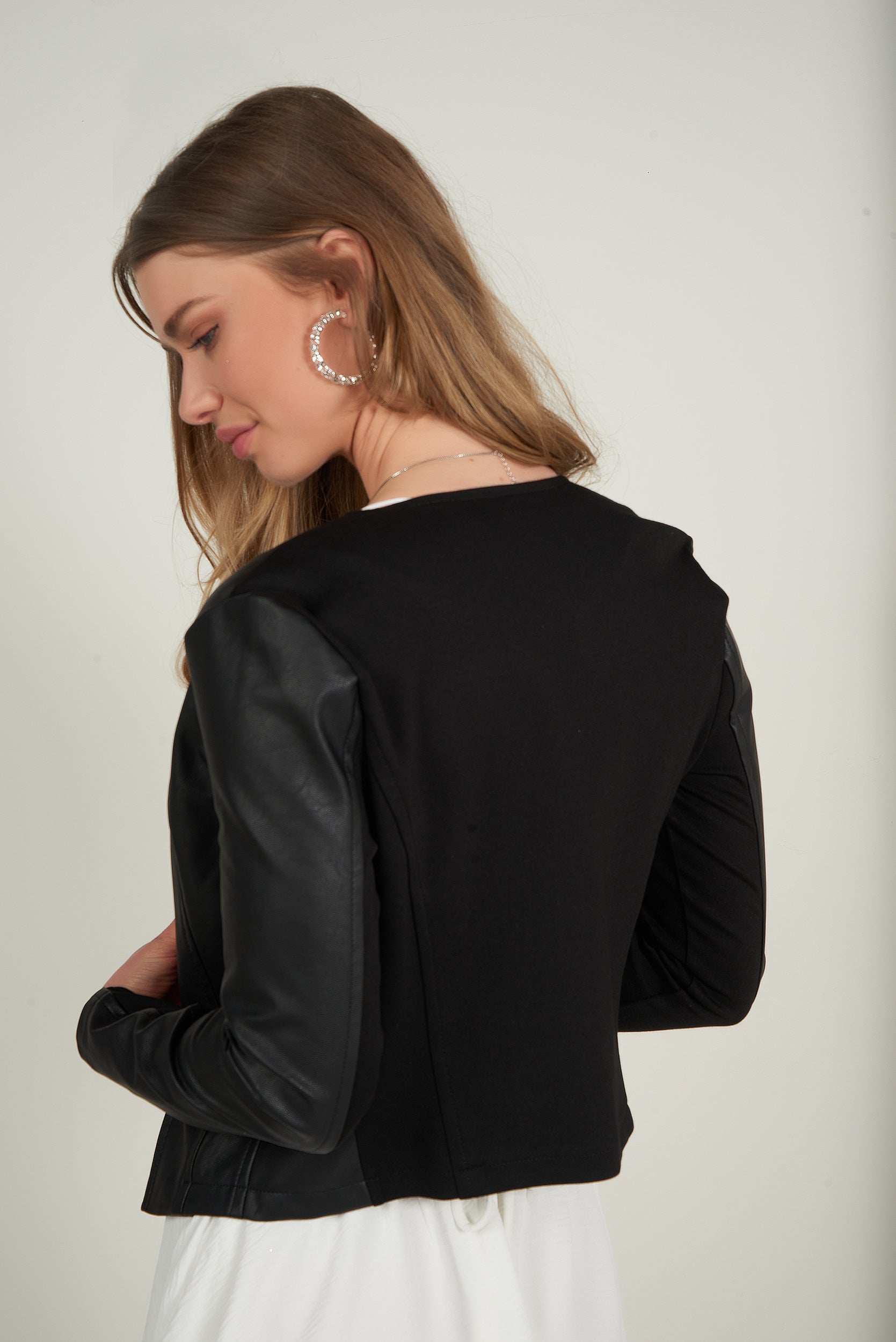- Faux leather jacket.
