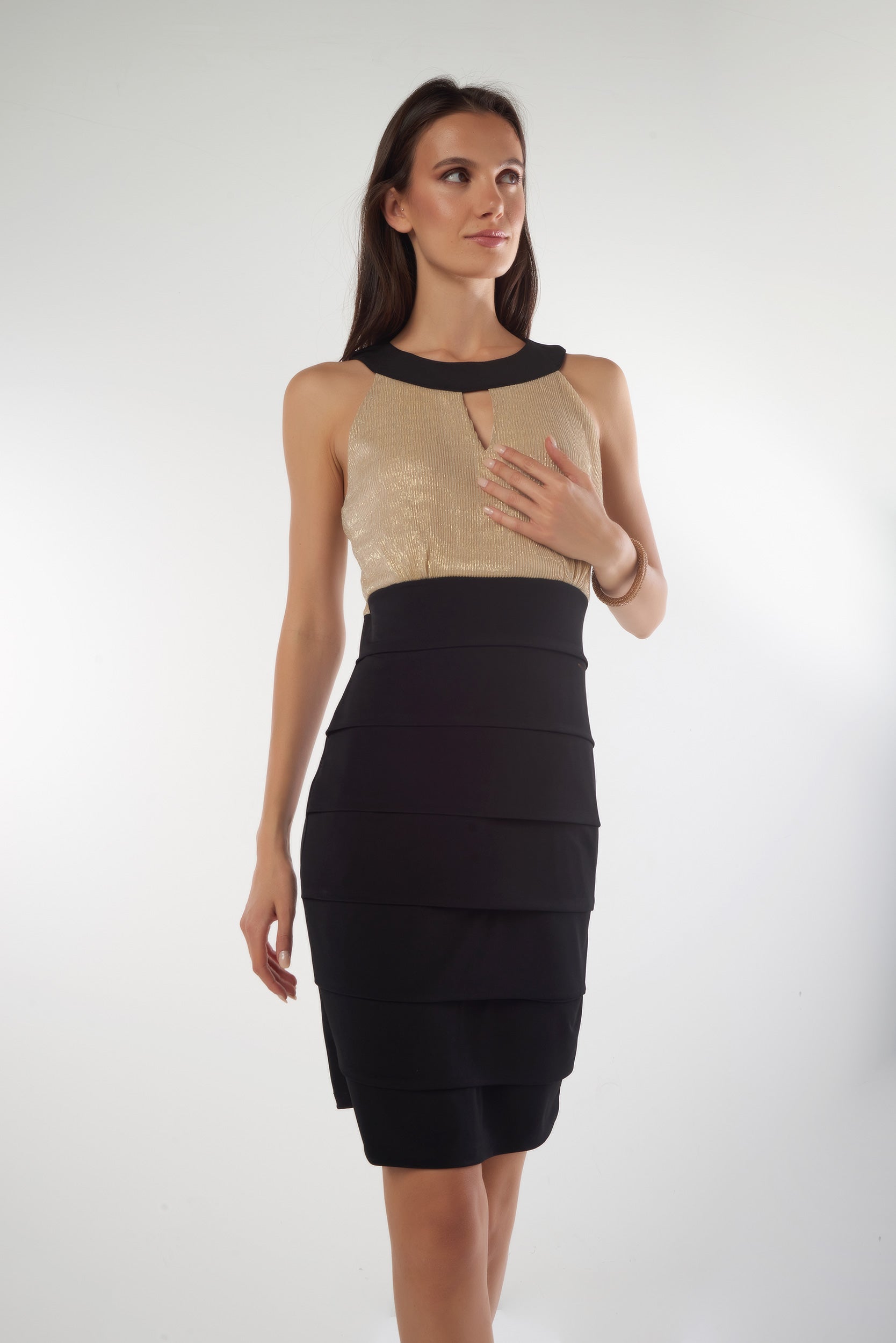 Simple et élégante, avec une touche d'originalité... c'est ce que représente notre robe mini pour femme Nadinne2. Une robe multicouches dotée d'un haut brillant en chiffon, d'un col licou, d'une coupe moulante et d'un attache à boutons dans le cou.